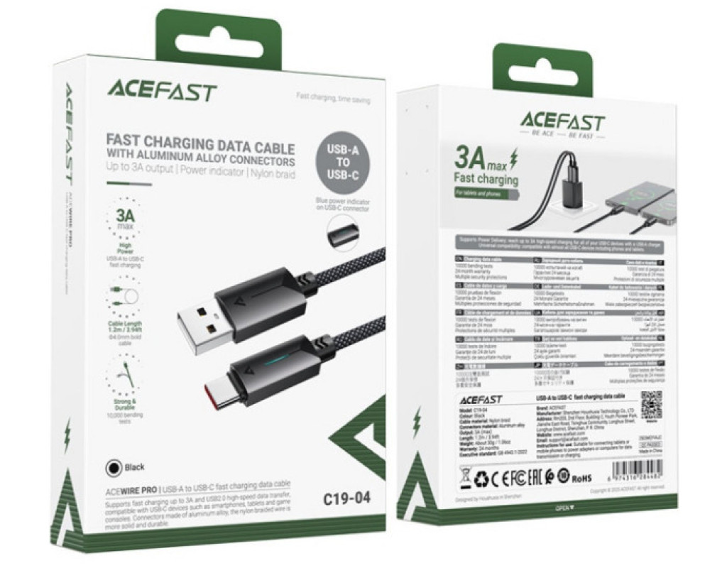 Acefast C19-04 USB 2.0 AM-Type-C M - надійний кабель для пристроїв із роз’ємом USB-C, зокрема ноутбуків, планшетів та смартфонів. Він забезпечує стабільне заряджання з зарядним струмом до 3А. Світлодіодний індикатор підтверджує активний статус процесу живлення та допомагає легко знайти кабель в темряві. Вбудований інтелектуальний чіп робить процеси заряджання та синхронізації даних безпечними для підключених пристроїв. Кабель Acefast C19-04 USB 2.0 AM-Type-C M оснащений стійкими до механічних пошкоджень та окислення конекторами з високоякісного алюмінієвого сплаву. Зовнішнє міцне нейлонове обплетення захищає кабель від розривів, перегинів та заплутування. |
