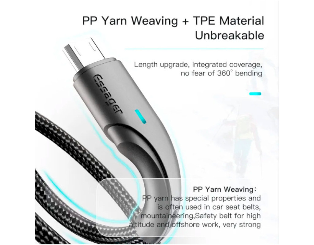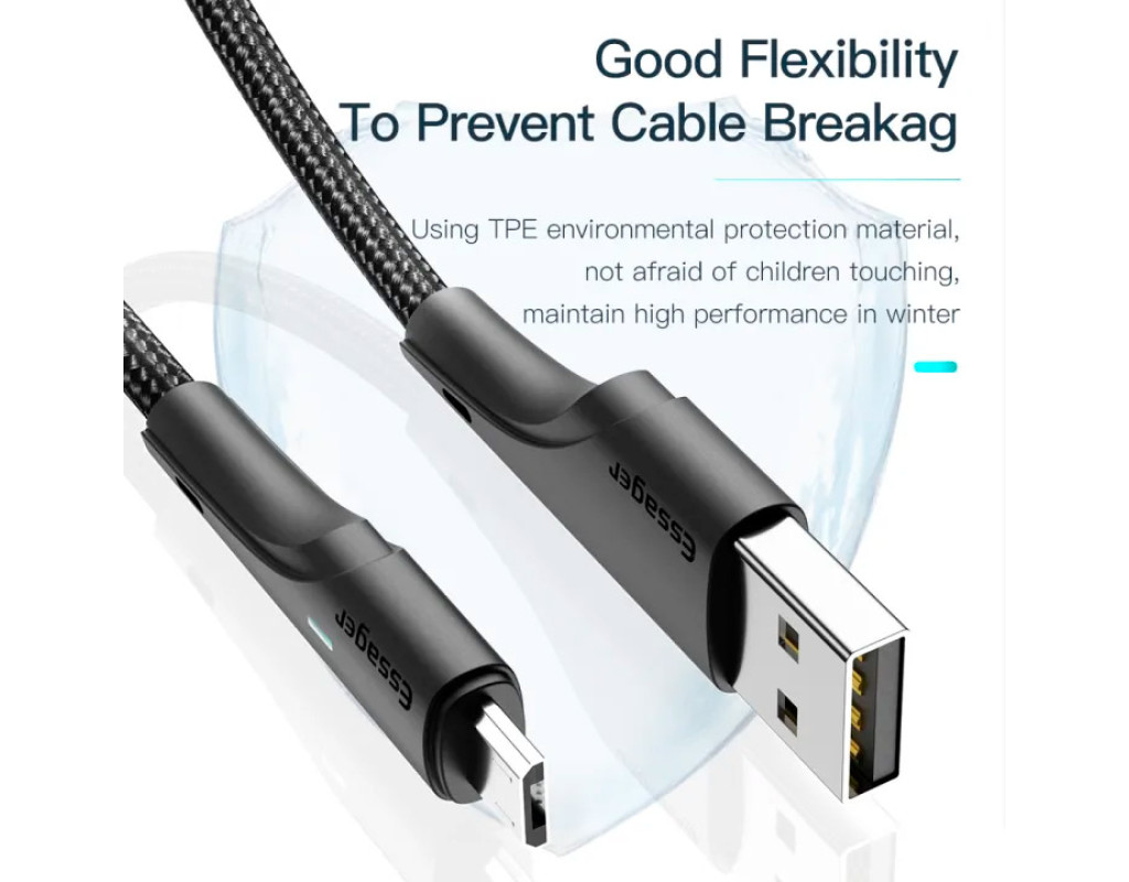 Плетеный кабель Essager Rousseau 2.4A Fast Charging USB Micro выполнен из качественных материалов. По всей его поверхности можно обнаружить нейлоновую защитную оплетку. Прочный материал не трескается и не рвется. За счет нейлоновой оплетки, кабель можно сгибать на 360°. Быстрая зарядка — это еще не все. Кабель Essager Rousseau 2.4A Fast Charging USB Micro также обеспечивает не менее быструю передачу данных со скоростью 480 Мбит/с. Теперь вы сможете передавать все необходимые файлы между устройствами в одно мгновение. Фотографии, фильмы или документы — вам не придется бесконечно ждать, пока они окажутся в пункте назначения. Высококачественный кабель Essager идеально совместим с любым устройством с разъемом Micro. |