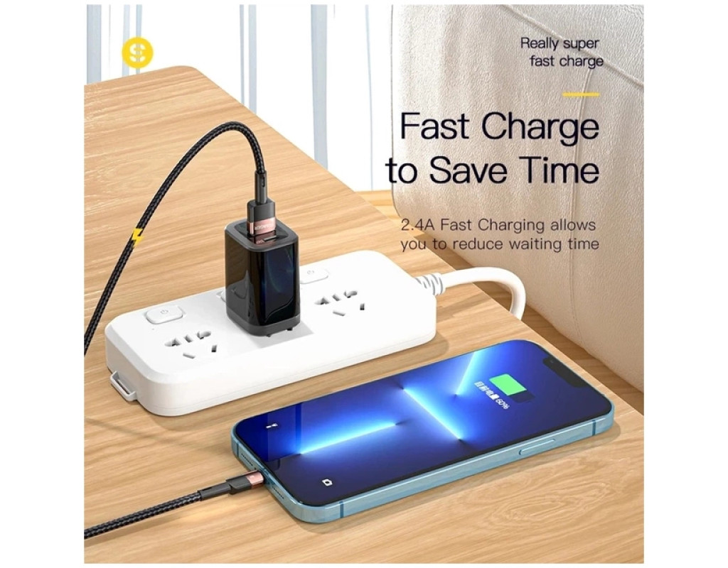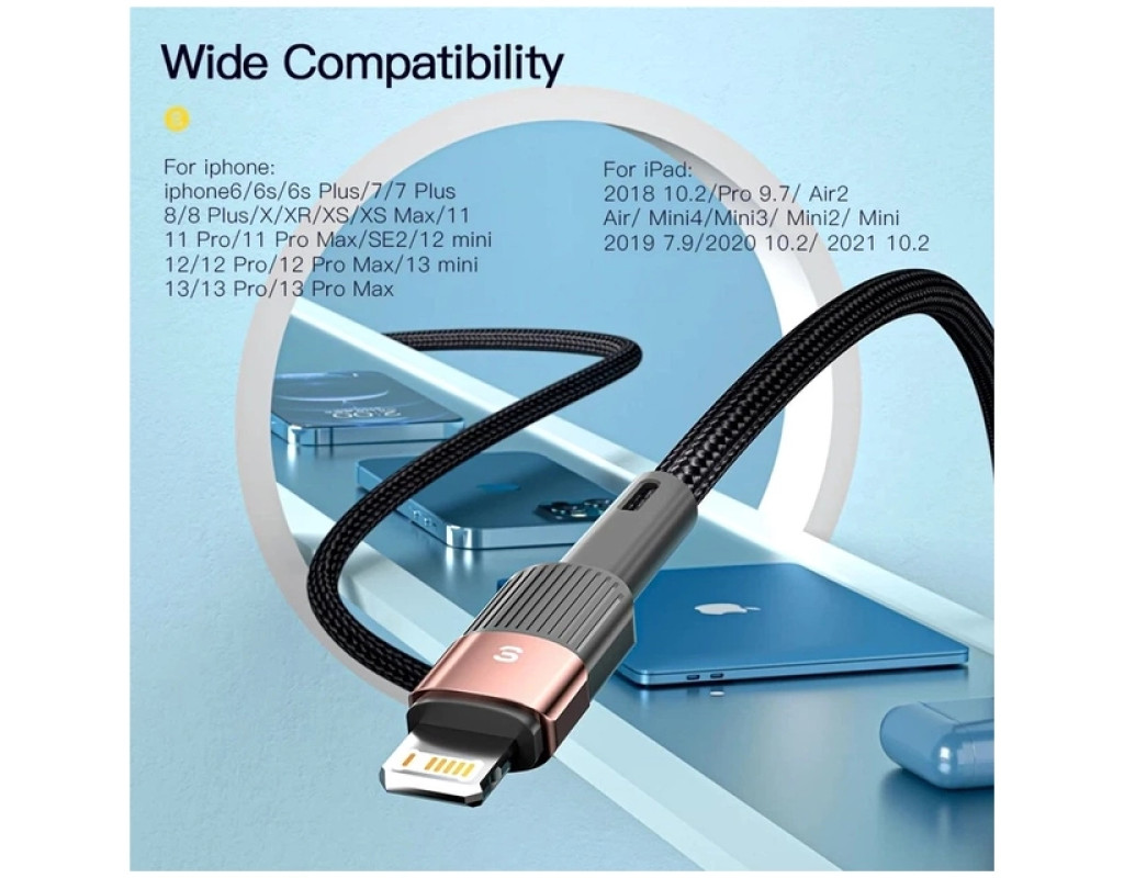 Плетеный кабель Essager USB-A to Lightning выполнен из качественных материалов. По всей его поверхности можно обнаружить нейлоновую защитную оплетку. Прочный материал не трескается и не рвется. За счет нейлоновой оплетки, кабель можно сгибать на 360°. Быстрая зарядка — это еще не все. Кабель Essager Star 6A Lightning USB также обеспечивает не менее быструю передачу данных со скростью 480 Мбит/с. Теперь вы сможете передавать все необходимые файлы между устройствами в одно мгновение. Фотографии, фильмы или документы — вам не придется бесконечно ждать, пока они окажутся в пункте назначения. Высококачественный кабель Essager идеально совместим с любым устройством с разъемом Lightning. |