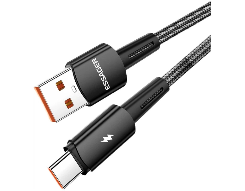 Дизайн: Плетеный кабель Essager Sunset USB A x USB Type C 120 Вт выполнен из качественных материалов, не трескается и не рвется. За счет нейлоновой оплетки, кабель можно сгибать на 360°. Сам кабель выполнен из термопластичного эластомера, а коннекторы — из алюминиевого сплава с разъёмами USB-A to Type-C. Безопасный заряд батареи: Кабель Essager имеет встроенную защиту, которая устраняет перегрев и перегрузку. Заряжайте ваши устройства быстро и безопасно. Высококачественный кабель Essager Data Cable идеально совместим с устройствами с разъемом USB-C. Характеристики: