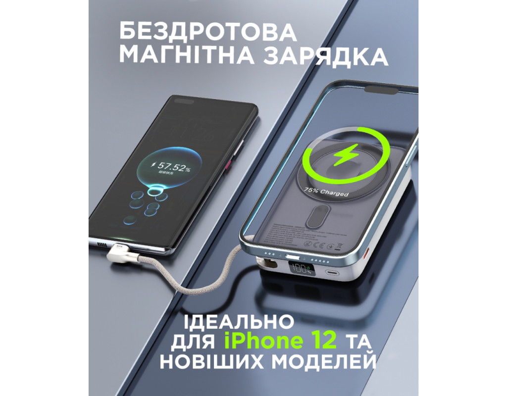 Батарея универсальная Sigma X-power SI10A8QL-MAG silver 10000mAh, Magnetic wireless 15W, charge iWatch, PD+QC, 22,5W max (4827798161012)