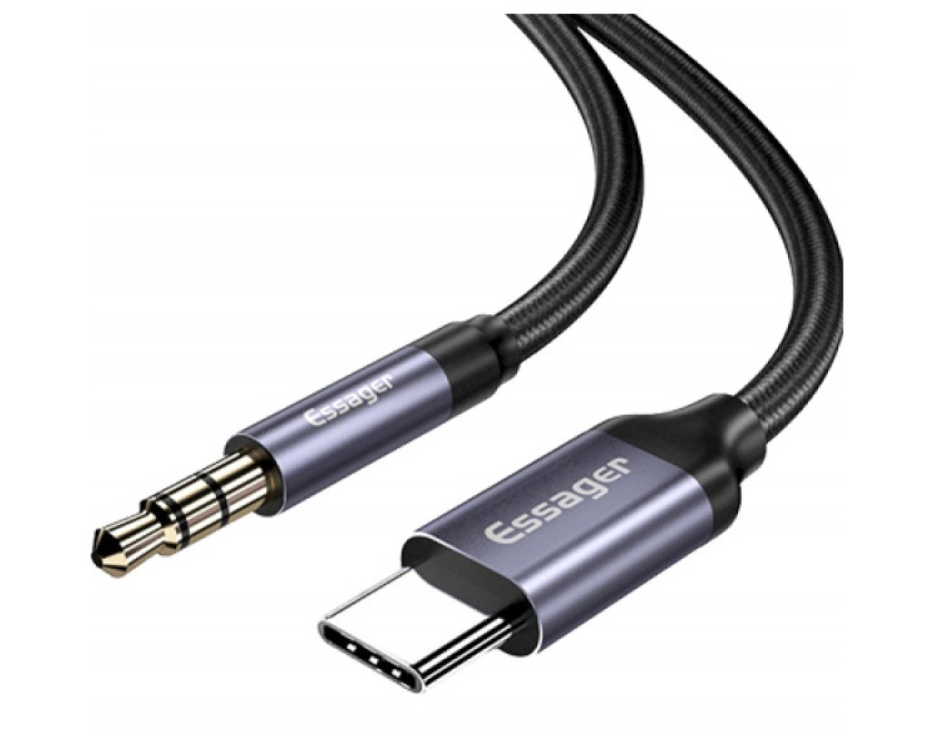Кабель мультимедийный USB-C to 3.5mm M 1.0m gray Essager (EZJE02-0G)