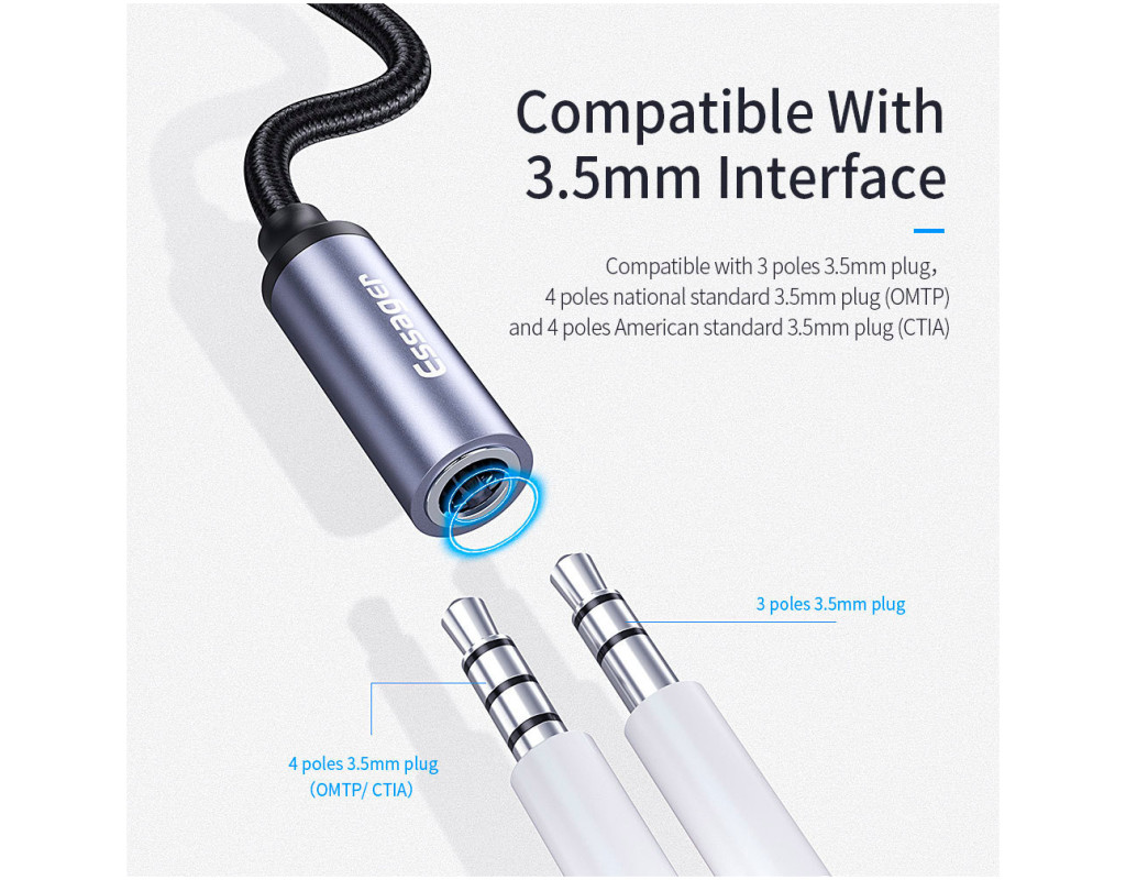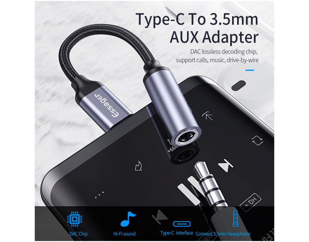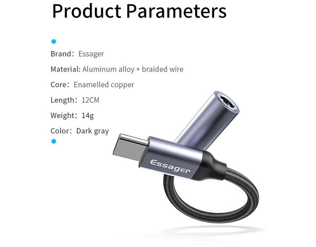 Переходник USB-C M to 3.5mm F 0.12m gray Essager (EZJE01-0G)