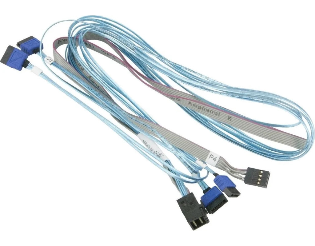 Кабель для передачи данных MiniSAS HD (SFF-8643) to 4xSATA 0.9/0,75m w/Sideband Supermicro (CBL-SAST-0699)