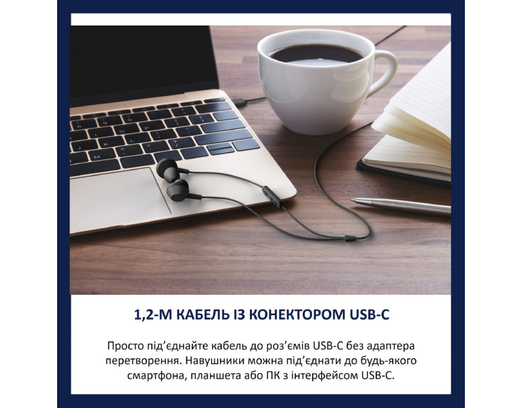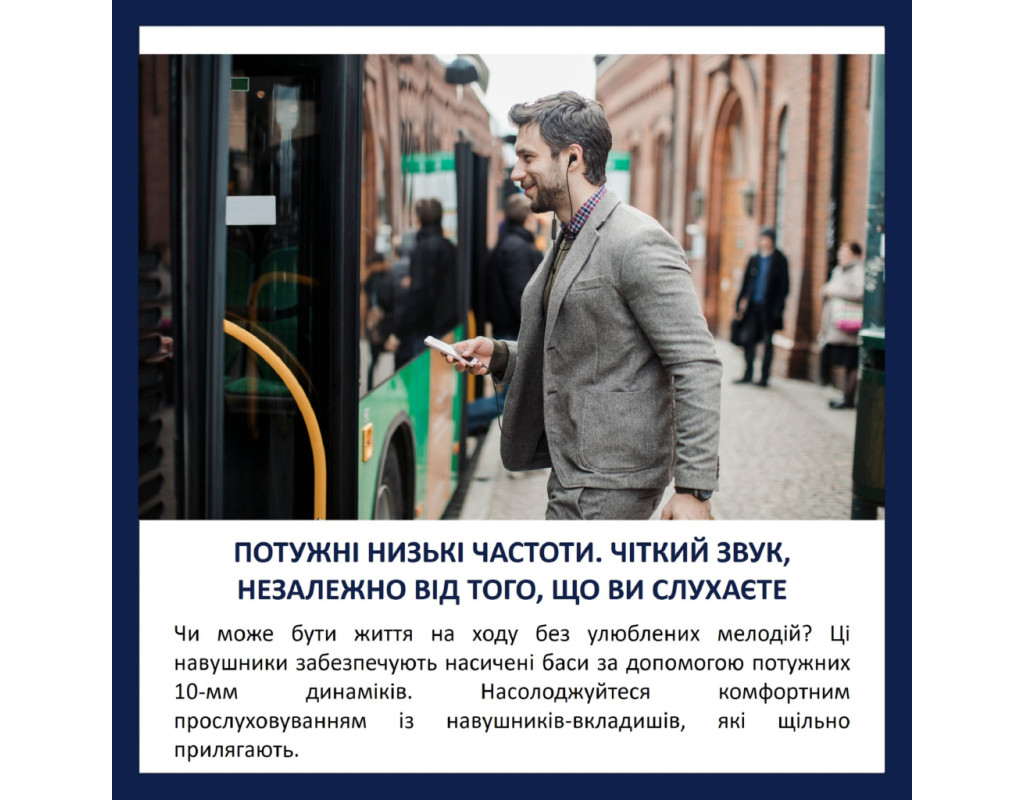 | Энергичные басы. Чистый звук при воспроизведении любого контента Поездки приносят гораздо меньше радости без любимой музыки. Эти наушники обеспечивают глубокое звучание низких частот благодаря 10-мм излучателям с магнитами, а удобная конструкция вкладышей обеспечит комфортную посадку. Встроенный преобразователь повышает качество звукаОтдайте любимой музыке дань уважения и слушайте ее в соответствующем качестве. Эти наушники оснащены встроенным преобразователем, который повышает качество аудиоконтента, чтобы вы наслаждались каждой секундой любимых композиций. Наслаждение музыкой и полный комфорт целый деньАкустическая трубка овальной формы и 3 пары амбушюр разного размера обеспечат герметичную посадку и комфорт при длительном ношении. Приятные ощущения даже при длительном прослушивании. 3-кнопочный встроенный пульт. Легко управляйте музыкой и вызовамиВстроенный 3-кнопочный пульт позволяет с еще большим комфортом управлять этими наушниками. Звоните, настраивайте параметры и общайтесь с голосовым ассистентом — все это без использования смартфона. Встроенный микрофон. Быстро отвечайте на звонкиЭти прекрасные наушники оснащены встроенным микрофоном, который позволит легко переключаться между музыкой и вызовами, чтобы всегда оставаться на связи. Кабель 1,2 м с разъемом USB-CЛегко подключайте их к разъему USB-C без дополнительного адаптера. Наушники можно подключать к любым смартфонам, планшетам и ПК, оснащенным разъемом USB-C. |