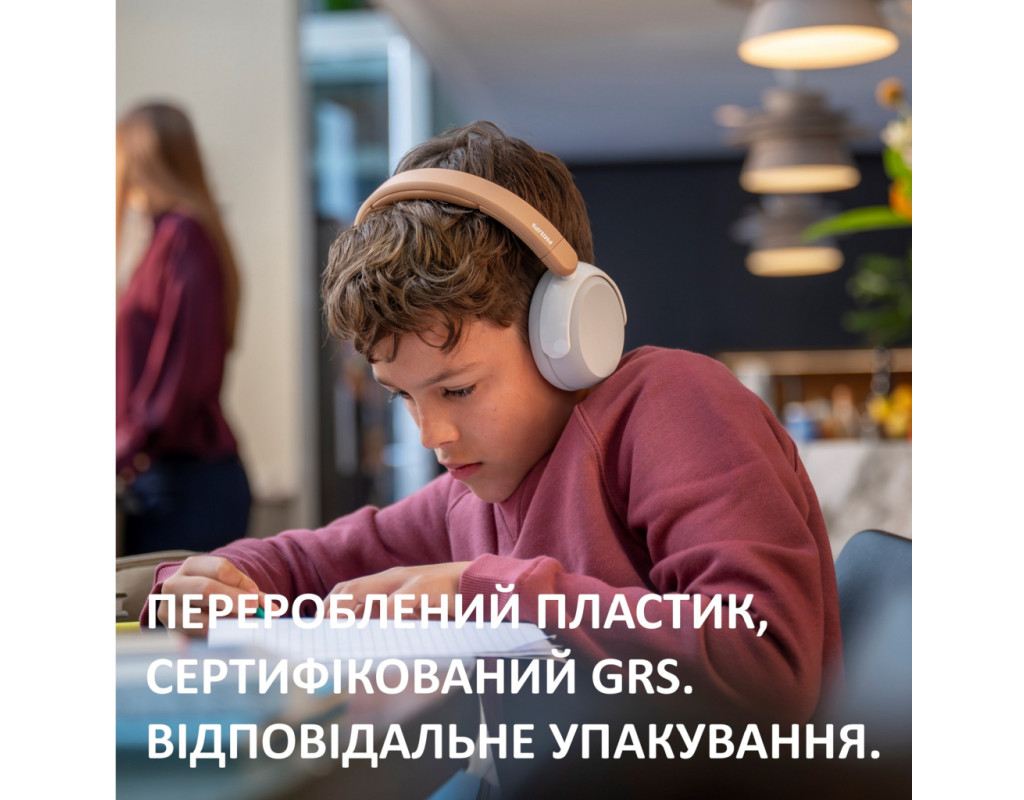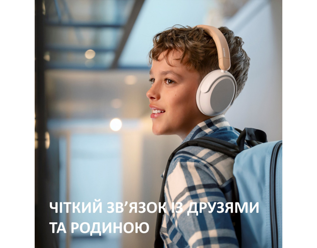 | Созданы для маленьких меломанов. Ограничение громкости для дома и поездок Эти наушники с комфортной посадкой поверх ушей обеспечивают пассивное шумоподавление, а ограниченной громкости до 75 дБ будет достаточно для прослушивания в тихой обстановке. Для более шумных мест можно включить режим шумоподавления на наушниках или в приложении Philips Headphones — в приложении родители также смогут поднять предельную громкость до 85 дБ в режиме поездки. Адаптивное шумоподавление для прослушивания без вреда для слухаАдаптивное шумоподавление автоматически подстраивается под особенности окружения, чтобы дети могли сосредоточиться на учебе или слушать любимый контент даже в шумной обстановке без чрезмерного увеличения громкости. На чашках наушников можно включить режим восприятия внешних звуков, чтобы дети могли не забывать о звуках окружения, а с функцией Quick Awareness они обязательно услышат вас даже в наушниках. Беспроводное совместное прослушивание аудио для еще большего весельяЕсли у друзей вашего ребенка также есть наушники Philips K5500, они могут настроить шлейфовое подключение в беспроводном режиме и одновременно слушать выбранный контент — каждый в своих наушниках. Одна пара наушников подключается к мобильному устройству, на котором включается контент, а затем на обоих наушниках нужно нажать многофункциональную кнопку, чтобы активировать режим совместного прослушивания. Приложение Philips Headphones для родительского контроляНаше специальное приложение можно использовать для настройки времени прослушивания, чтобы дети не засиживались в телефоне, или для переключения ограничения громкости со стандартных 75 дБ до 85 дБ* в режиме поездки. Переработанный пластик сертификации GRS. Экологичная упаковкаВ этом устройстве используется бывший в употреблении переработанный пластик, а упаковка вообще не содержит пластика. Вставки напечатаны на переработанной бумаге с соевыми чернилами, а упаковка изготовлена из переработанного картона по стандарту FSC. Складная конструкция для комфортного управления и использования детьмиБольшие круглые кнопки на чашках наушников обеспечивают максимальное удобство использования, а мягкие амбушюры — чрезвычайно комфортную посадку. Мягкое оголовье можно отрегулировать для идеальной посадки, а точки на задней стороне корпуса помогут сразу понимать, какой стороной надевать наушники. Их можно сложить в плоскость либо в плоскость и вовнутрь для комфортного хранения, когда они не используются. Чистое звучание голоса при общении с семьей и друзьямиОтдельный встроенный микрофон позволит ребенку общаться с семьей и друзьями по голосовой связи — он отвечает за захват звуков голоса, в то время как алгоритм шумоподавления частично устраняет фоновый шум окружения. Длительная работа от аккумулятора и простое подключениеОцените до 60 часов воспроизведения (34 с активным шумоподавлением) без подзарядки, а также функцию быстрой 15-минутной зарядки, с которой заряда хватит на 10 часов воспроизведения. Также доступен 3,5-мм разъем для проводного подключения. Специальная кнопка BT позволит детям легко выполнять сопряжение с мобильными устройствами, а многоточечное подключение — одновременно подключать наушники сразу к нескольким устройствам. Теплый и органичный звук. Фирменное звучание PhilipsОт фильмов до музыки — лю