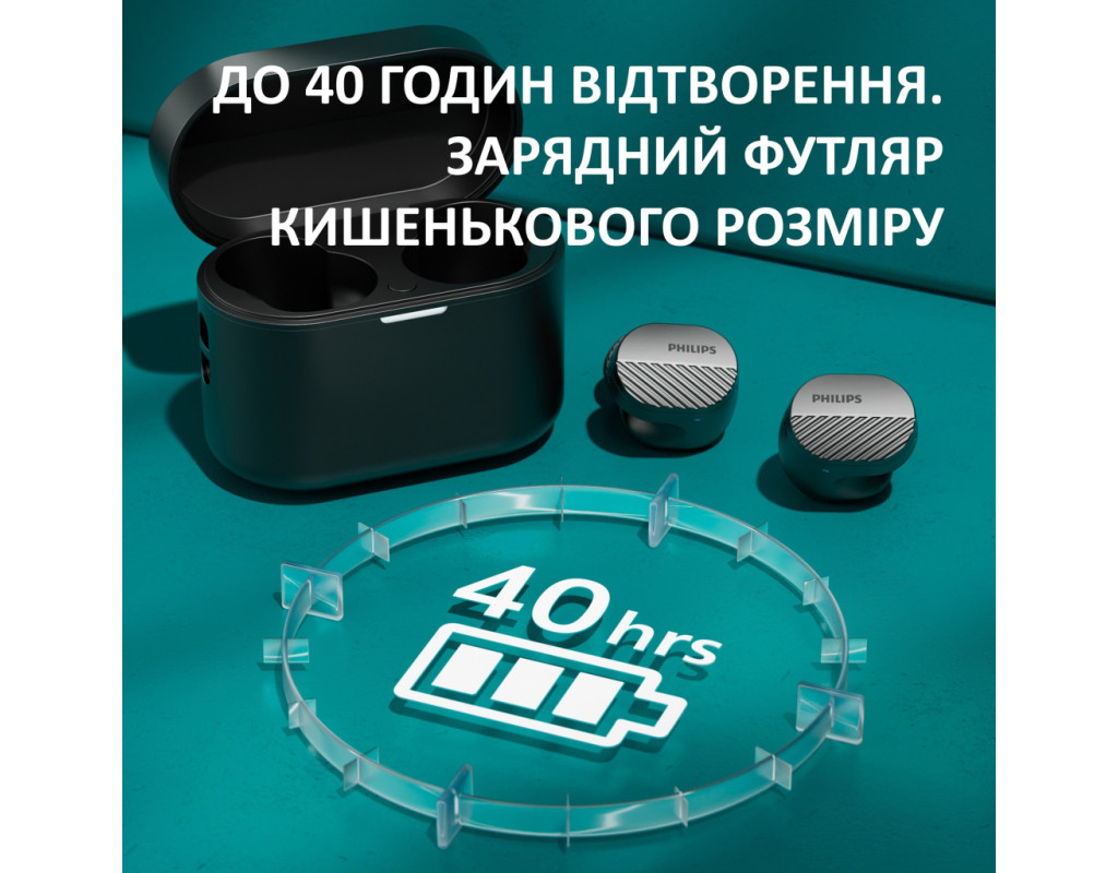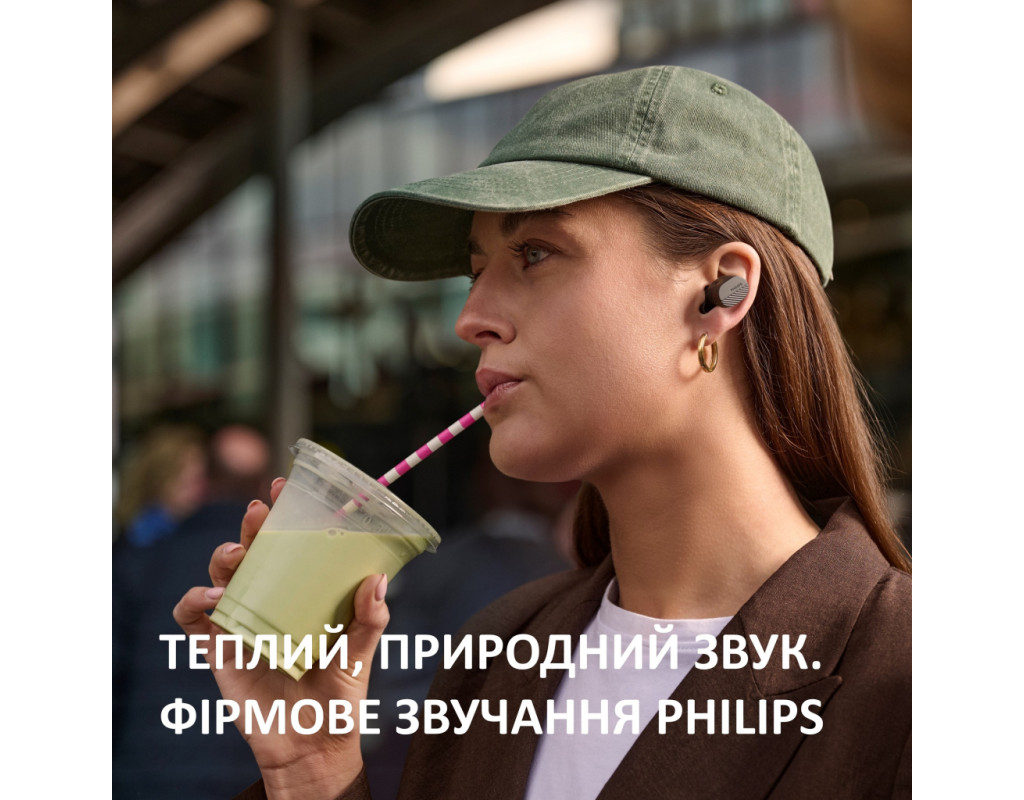 | Полное погружение с адаптивным шумоподавлением Адаптивное шумоподавление автоматически реагирует на ваше окружение и подавляет внешние шумы, включая ветер. Чтобы услышать звуки окружения, просто коснитесь одного из наушников — это включит режим восприятия внешних звуков — или включите функцию Quick Awareness, чтобы улучшить качество восприятия голоса и свободно общаться, не вынимая один наушник из уха. Технология с 6 микрофонами. Чистое звучание даже в шумных местахВо время разговора наша конфигурация с 6 микрофонами и алгоритм шумоподавления обеспечат стабильный захват вашего голоса и устранят внешние шумы. Даже если вы общаетесь из шумного кафе, собеседник четко услышит ваш голос, и ему не придется заодно слушать все звуки вашего окружения. До 40 часов воспроизведения. Карманный футляр для зарядкиС выключенным шумоподавлением полного заряда хватит на 10 часов воспроизведения, а заряда с компактного футляра хватит еще на 30 часов (7 часов и дополнительные 21 часов с футляра с шумоподавлением). Если наушники разрядились, поместите их в футляр на 15 минут — заряда хватит еще на 3 часа работы. Футляр можно зарядить через интерфейс USB-C. Стабильное многоточечное подключение по Bluetooth и удобное сопряжениеBluetooth 5.4 обеспечивает более стабильное подключение, и эти наушники работают с устройствами, которые поддерживают кодек LC3, для заметно более качественного звучания. Вы можете подключить их по Bluetooth одновременно к двум устройствам и управлять подключениями в приложении Philips Headphones. Пользователи Android также могут использовать Google Fast Pair, а пользователи Windows — Microsoft Swift Pair. Защита от влаги IPX5Класс защиты IPX5 позволит не беспокоиться о наушниках, если вдруг вы попали под дождь и даже ливень. Решили послушать музыку в жаркий день? Капли пота также им не страшны. Надежная посадка и сенсорное управление на корпусе наушниковТекстурированные силиконовые амбушюры обеспечивают комфортную и надежную посадку — в комплекте доступно три пары амбушюров разного размера. Сенсорные элементы управления на наушниках позволят легко использовать различные функции — а их назначение можно изменить в приложении Philips Headphones. Приложение Philips Headphones. Управляйте шумоподавлением и другими функциямиПомимо персонализации сенсорных элементов управления на наушниках в приложении можно настроить шумоподавление, выключить автоматическую ветрозащиту и настроить уровень восприятия внешних звуков в соответствующем режиме. Также здесь можно загрузить актуальную версию встроенного ПО для наушников — и не только! Экологичный дизайн и упаковкаМы постоянно работаем над тем, чтобы сделать нашу цепочку поставок более экологичной и прозрачной. Эти наушники-вкладыши изготовлены из бывшего в употреблении переработанного пластика сертификации GRS, а в нашей упаковке, не содержащей пластика, используется переработанный картон стандарта FSC и соевые чернила. Теплый, детальный и органичный звук. Фирменное звучание PhilipsОт музыки до подкастов — оцените полный деталей и естественный звук с насыщенными басами, пока излучатели с графеновым покрытием идеально передают как высокие, так и низкие частоты. Android или iOS — ваша любимая музыка всегд |
