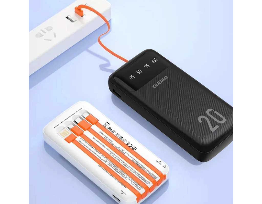 | УМБ Dudao 20000mAh K6Pro+ 10W USB-A,USB-C In/Out,with USB-C/Lightning/MicroUSB/USB-A cables White |