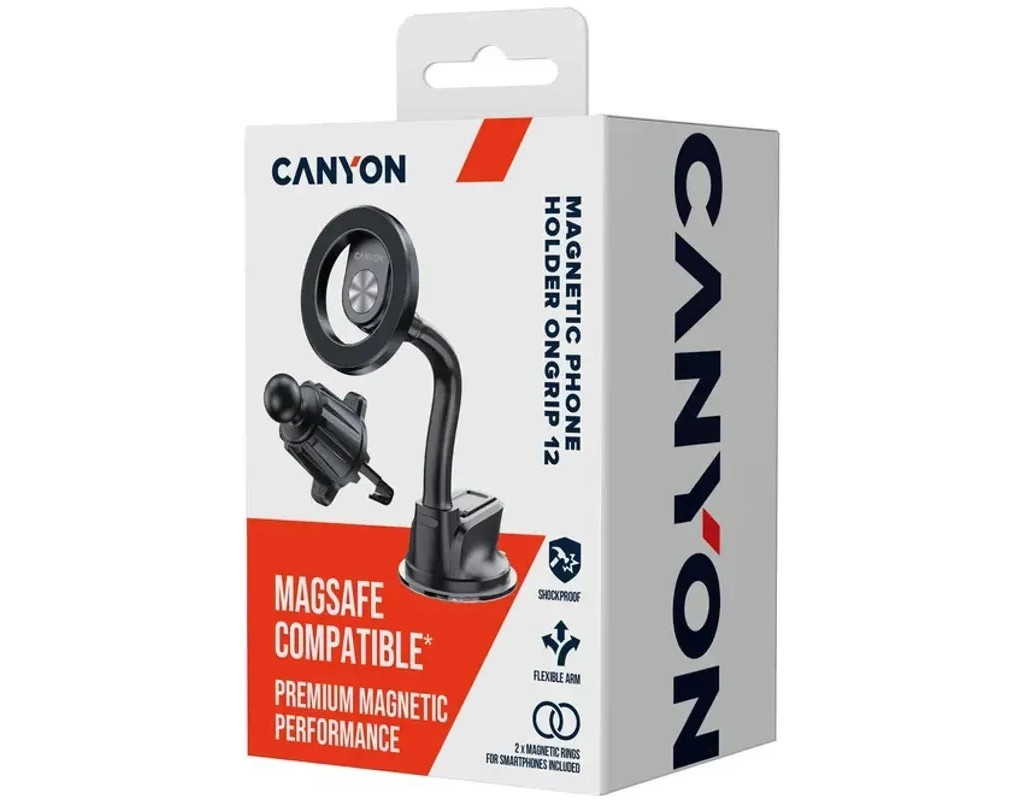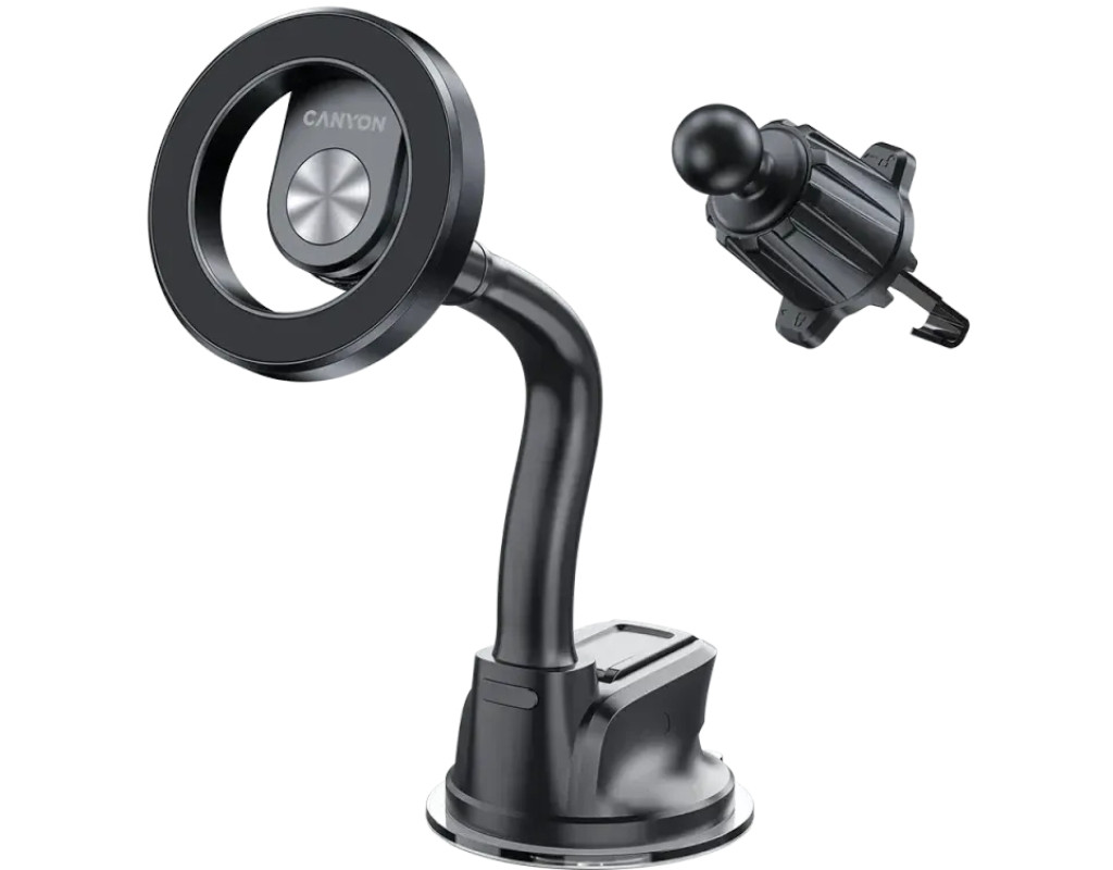 Универсальный автодержатель Canyon Magnetic car holder OnGrip 12 suction + air vent Black (CNS-CCHM12)