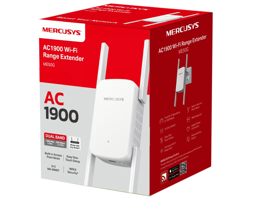Скорости до 600 Мбит/с на диапазоне 2,4 ГГц и до 1300 Мбит/с на диапазоне 5 ГГц будет достаточно для просмотра потоковых видео 4K и онлайн-игр. Создавайте Wi-Fi там, где он нужен Одного роутера почти всегда недостаточно для создания хорошего Wi-Fi покрытия по всему дому. Усилитель с четырьмя мощными регулируемыми антеннами устранит эту проблему и не оставит в доме ни одной зоны со слабым сигналом Wi-Fi. Расширенные функции Адаптивное построение маршрута Технология адаптивного построения маршрута динамически выбирает лучший канал и диапазон для передачи данных, обеспечивая высокоскоростной Wi-Fi в любой точке дома. Режим высокой скорости Позволяет использовать один диапазон для раздачи Wi-Fi, а второй для обмена трафиком с роутером, что позволяет увеличить эффективность сети. Настройка одним нажатием Нажмите кнопку WPS на роутере и аналогичную кнопку на усилителе Wi-Fi сигнала, чтобы расширить покрытие за пару секунд. Режим точки доступа ME50G – это больше, чем просто усилитель Wi-Fi сигнала. Подключите к нему кабель Ethernet, чтобы преобразовать усилитель в двухдиапазонную точку доступа Wi-Fi. |