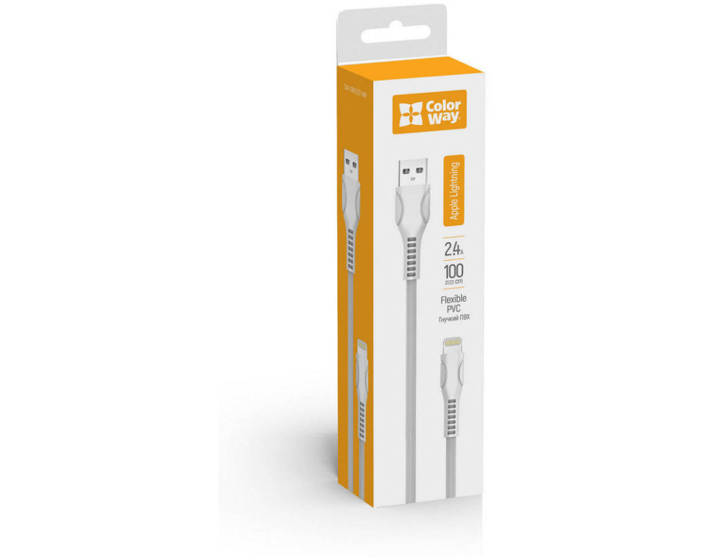 Дата кабель USB 2.0 AM to Lightning 1.0m line-drawing white ColorWay (CW-CBUL027-WH)