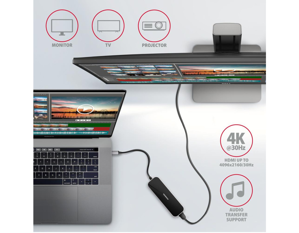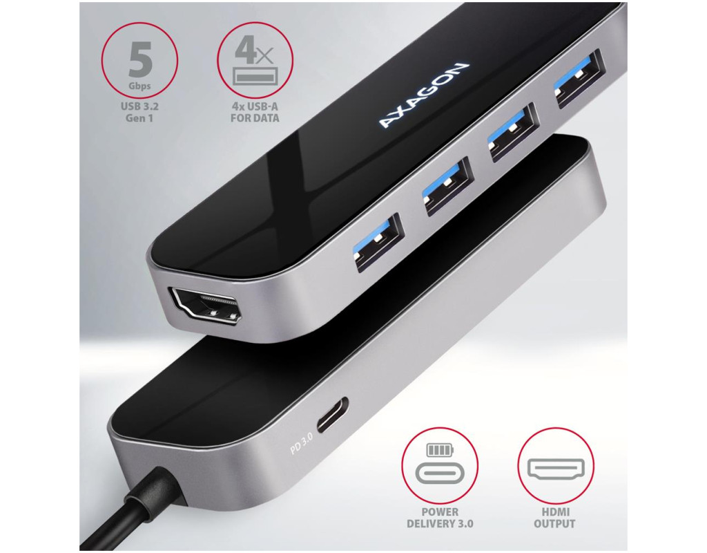 | Расширьте возможности вашего ноутбука одним движением AXAGON HMC-6H4A – это универсальный USB-C хаб, добавляющий к вашему ноутбуку или смартфону сразу шесть полноценных портов. Идеальный выбор для современных пользователей, которым нужна скорость, удобство и максимальная функциональность в компактном формате. Быстрое и стабильное подключение периферии Хаб оснащен четырьмя USB-A портами, позволяющими легко подключать клавиатуру, мышь, флеш-накопители или внешние SSD: