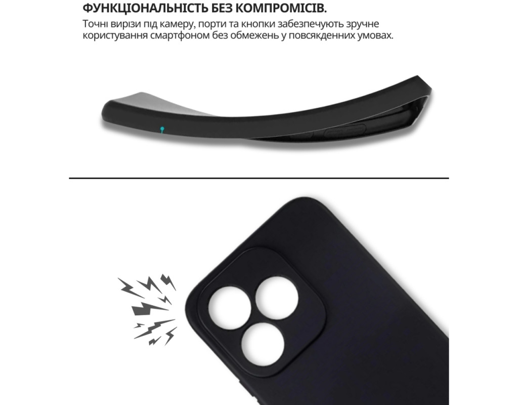 | "Тонкий і еластичний силіконовий чохол забезпечує надійний захист вашого смартфона від механічних пошкоджень, запобігаючи появі подряпин на корпусі. Завдяки високій якості матеріалу, чохол зберігає свою цілісність — він не рветься та не тріскається навіть при тривалому використанні. Чохол легко встановлюється, щільно прилягає до поверхні смартфона, не залишаючи повітряних зазорів, які могли б накопичувати пил, бруд або вологу. Легкий і непомітний, він не додає зайвого об'єму чи ваги вашому пристрою, забезпечуючи надійний захист від ударів, пошкоджень і вологи. Усі вирізи в чохлі точно відповідають роз'ємам і функціональним кнопкам смартфона, що гарантує зручне користування в будь-яких умовах. Силіконове покриття не ковзає, щільно облягає металевий корпус телефону та не перешкоджає доступу до роз'ємів для зарядки, USB-кабелю, гарнітури чи сканера відбитків пальців. Цей силіконовий чохол стане ідеальним вибором для тих, хто шукає стильний і практичний аксесуар для свого смартфона." |