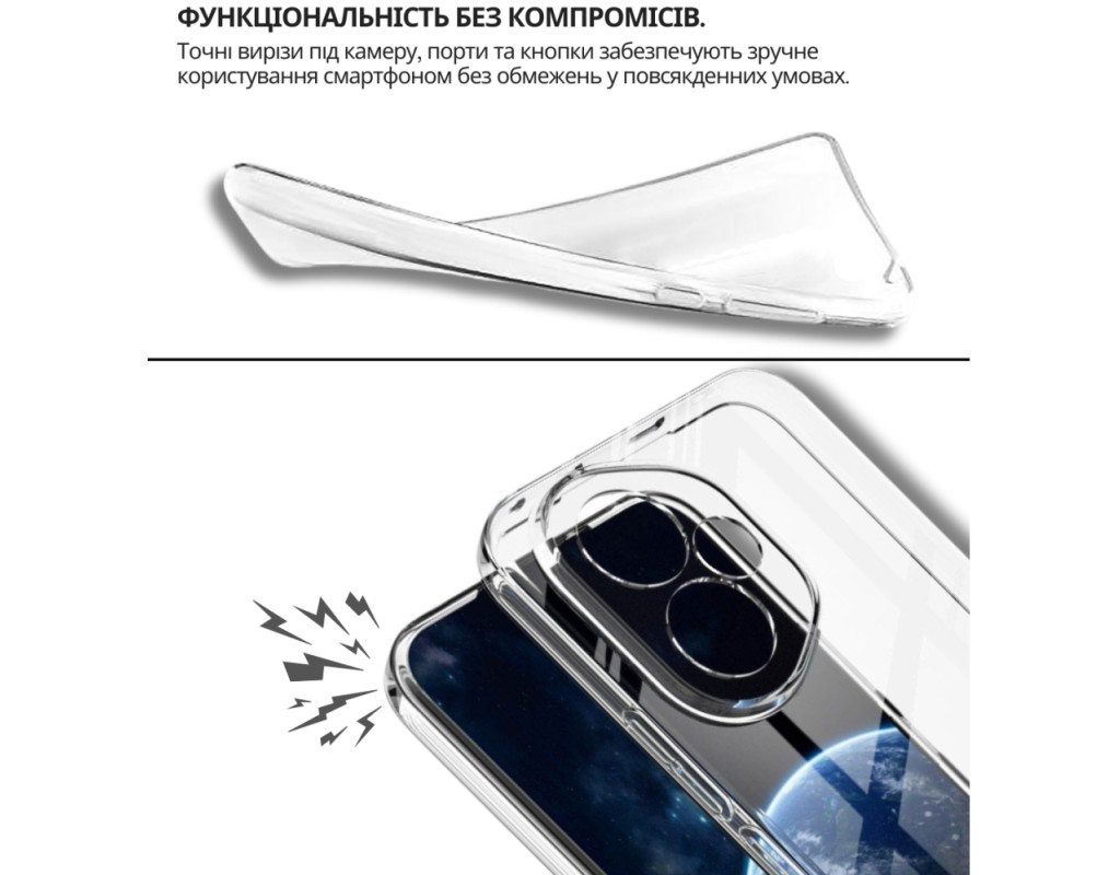 | "Тонкий і еластичний силіконовий чохол забезпечує надійний захист вашого смартфона від механічних пошкоджень, запобігаючи появі подряпин на корпусі. Завдяки високій якості матеріалу, чохол зберігає свою цілісність — він не рветься та не тріскається навіть при тривалому використанні. Чохол легко встановлюється, щільно прилягає до поверхні смартфона, не залишаючи повітряних зазорів, які могли б накопичувати пил, бруд або вологу. Легкий і непомітний, він не додає зайвого об'єму чи ваги вашому пристрою, забезпечуючи надійний захист від ударів, пошкоджень і вологи. Усі вирізи в чохлі точно відповідають роз'ємам і функціональним кнопкам смартфона, що гарантує зручне користування в будь-яких умовах. Силіконове покриття не ковзає, щільно облягає металевий корпус телефону та не перешкоджає доступу до роз'ємів для зарядки, USB-кабелю, гарнітури чи сканера відбитків пальців. Цей силіконовий чохол стане ідеальним вибором для тих, хто шукає стильний і практичний аксесуар для свого смартфона." |