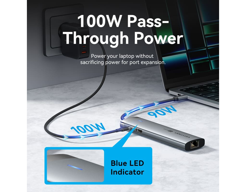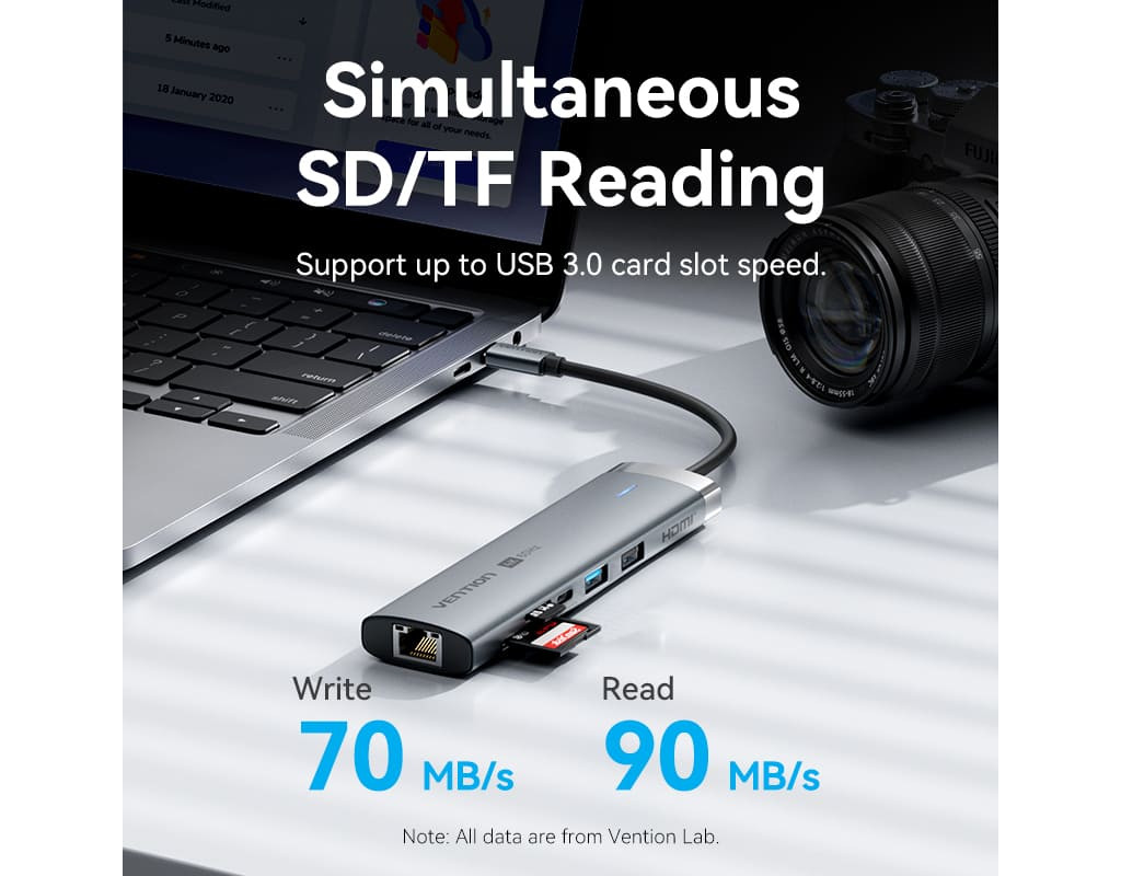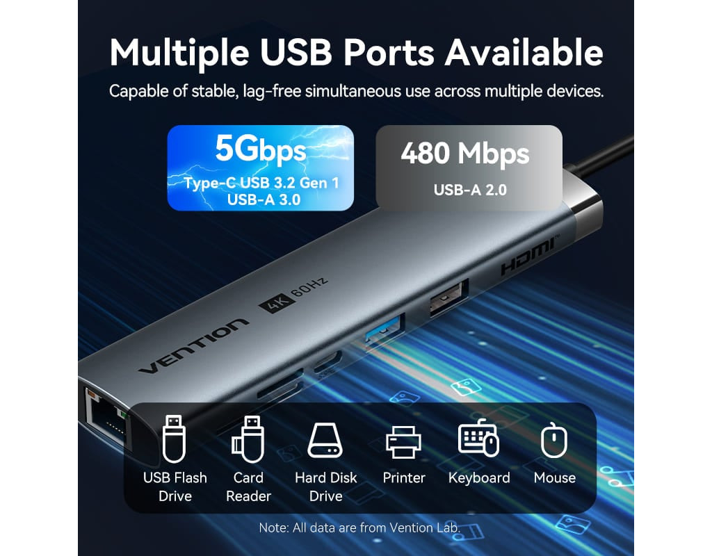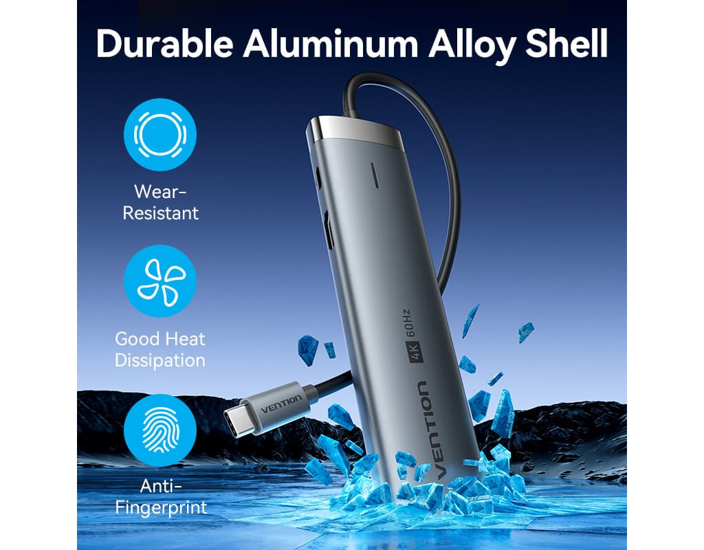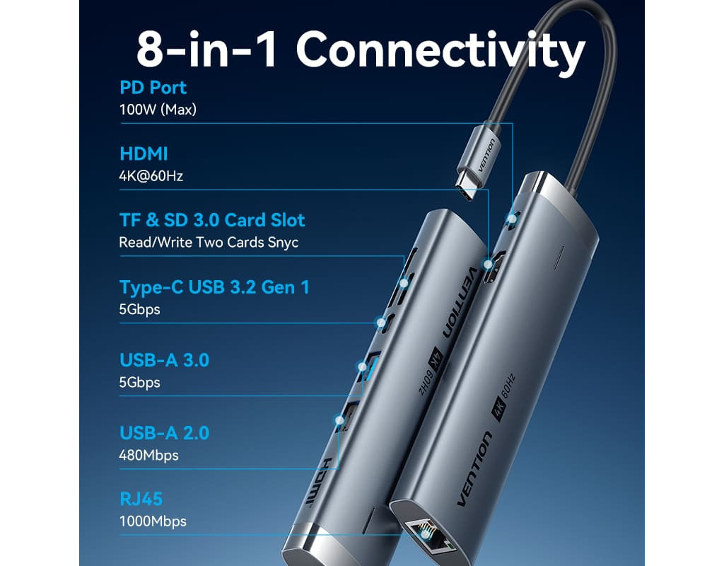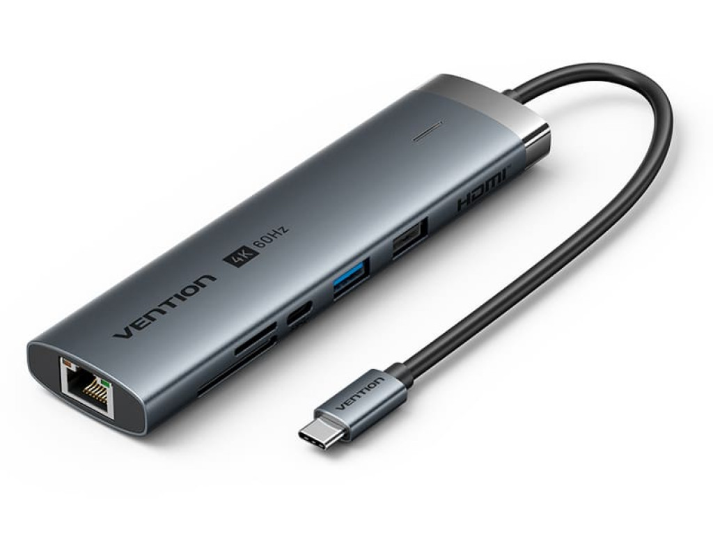 Концентратор VENTION USB-C 7-in-1 USB-C PD + USB 3.2 + USB 3.0 + USB 2.0 + RJ45 + SD/TF + HDMI 0.15m (TGUHB)