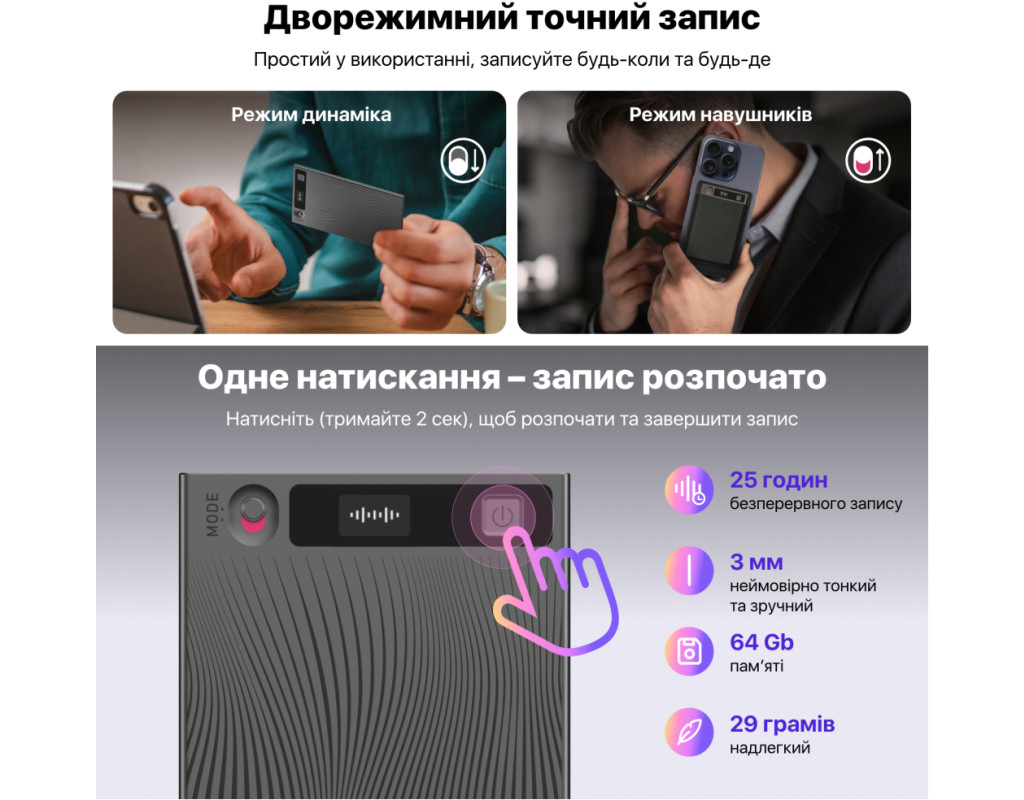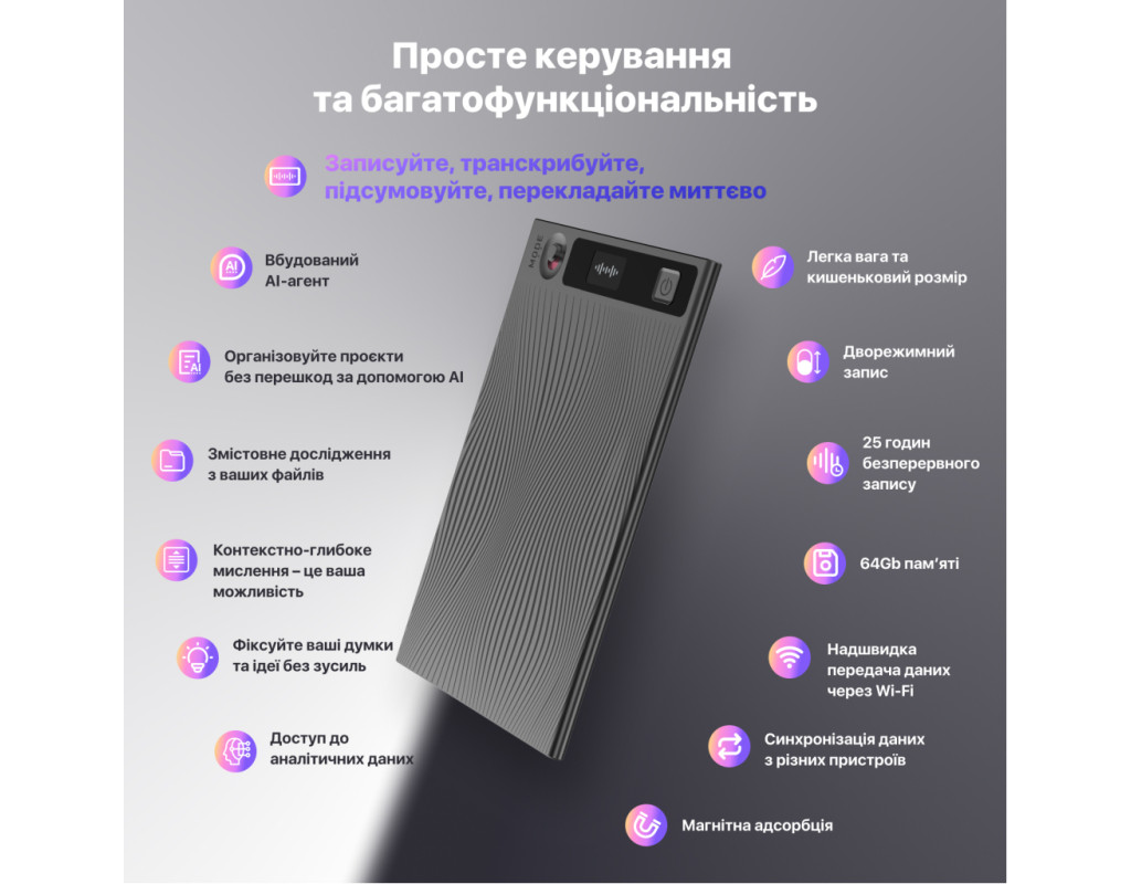 Цифровой диктофон Mobvoi TicNote with IA Shadow 64GB Black (NE-79)