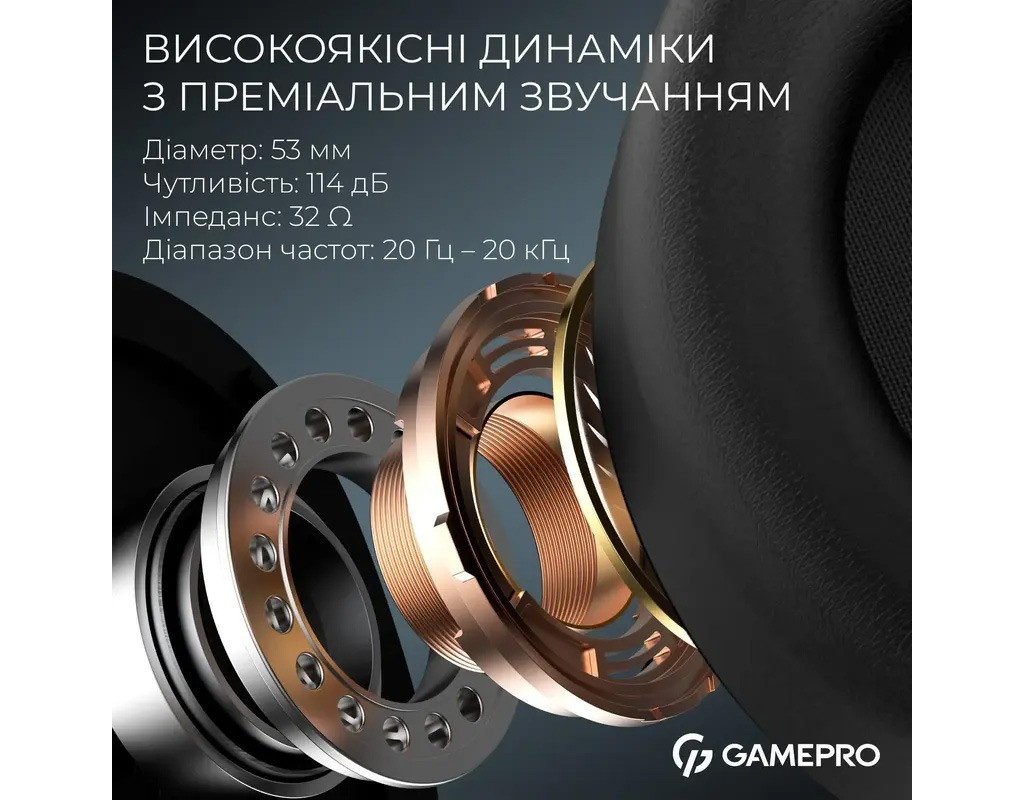 Динамики 53 мм обеспечивают мощное и детализированное звучание в диапазоне 20 – 20 000 Гц, с насыщенными басами и чистыми высокими. Чувствительность 114 дБ и импеданс 32 Ом гарантируют стабильный и глубокий звук в любой игре. Съемный всенаправленный микрофон с чувствительностью –47±3 дБ передает голос четко и естественно – идеально для командной игры или стримов. Двухметровий кабель с разъемом 3.5 мм обеспечивает широкую совместимость с ПК, ноутбуками, консолями и смартфонами. |