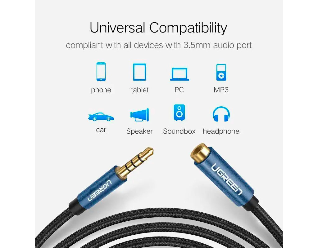 | Расширьте свой порт AUX 3.5 мм Удлинительный аудиокабель Ugreen 3.5 мм расширяет соединение между вашим iPhone, iPod, MP3-плеерами, смартфонами, планшетами или любыми другими устройствами, оснащенными 3.5-мм дополнительным портом, с вашими наушниками, наушниками, динамиком, автомобильной стереосистемой или системой домашнего кинотеатра и т. д. Защитите свой порт AUX Этот удлинительный аудиокабель — отличное решение для защиты дополнительного порта 3.5 мм от повторного подключения и отключения. Покупать новое устройство дорого, а достать дополнительный вспомогательный кабель 3.5 мм несложно. Поддерживаемые устройства Дополнительный удлинительный аудиокабель совместим со всеми устройствами с аудиоразъемом 3.5 мм, такими как Apple iPhone 6s/6s Plus/6/6 Plus/SE/5s/5c/5/4s/4, iPod, iPad, iPad Pro/Air 2/ 3/Mini, Samsung Galaxy s2/s3/s4/s5/s6/s6 Edge/s7/s7 Edge, Note 2/3/4/5, Note Edge, HTC M8/M9, Android, смартфоны и планшеты Google Nexus, Microsoft Surface, портативные колонки, наушники, MP3-плееры, ресиверы, автомагнитолы и другие устройства. Материал Чистая медь обеспечивает максимальную проводимость и долговечность. Позолоченные разъемы устойчивы к коррозии и обеспечивают оптимальное качество звука. Конструкция без спутывания облегчает использование и хранение. Пошаговая конструкция позволяет работать, не снимая чехол для телефона/планшета. Важные примечания: Если вы используете наушники TRRS (4-проводные) с этим удлинительным кабелем, звук будет работать, но микрофон не будет. Он также НЕ работает со встроенным регулятором громкости на наушниках. |