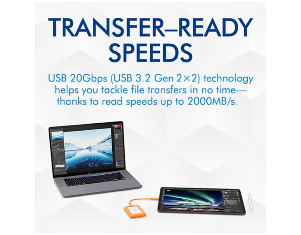 | Накопитель SSD USB Type-C 1TB Rugged Mini LaCie (STMF1000400) - это идеальное решение для тех, кто ищет надежное и портативное средство хранения данных. Благодаря скорости чтения и записи до 2000 Мб/с, этот твердотельный накопитель способен мгновенно обрабатывать большие объемы информации, обеспечивая быстрое создание резервных копий и бесперебойное выполнение творческих задач. Прочная конструкция с защитой от пыли и воды (IP54) гарантирует, что накопитель выдержит падение с высоты до 3 метров и даже давление автомобиля до 1 тонны. Это делает его незаменимым спутником во время путешествий или в экстремальных условиях работы. Универсальная совместимость позволяет легко подключать накопитель к Mac, Windows, iPad и даже iPhone через интерфейс USB 3.2 Type-C, что обеспечивает максимальную гибкость в использовании. А встроенная флеш-память типа 3D TLC NAND реализует высокую производительность и надежность при многолетней эксплуатации. Экологичность также является важным аспектом этого продукта: корпус изготовлен как минимум на 30% из переработанных материалов, а упаковку можно полностью утилизировать. Это подчеркивает ответственность LaCie перед окружающей средой. В целом, LaCie Rugged Mini SSD является не просто накопителем, а важным инструментом для профессионалов, которые ценят качество, безопасность и экологичность в одном компактном решении. |