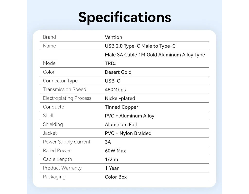 С кабелем Vention вы получаете скорость передачи данных до 480 Мбит/с при стабильной передаче.Кабель для передачи данных Vention имеет крепкое соединение, обеспечивающее стабильную передачу.Вам не нужно беспокоиться о неожиданном выпадении кабеля. |