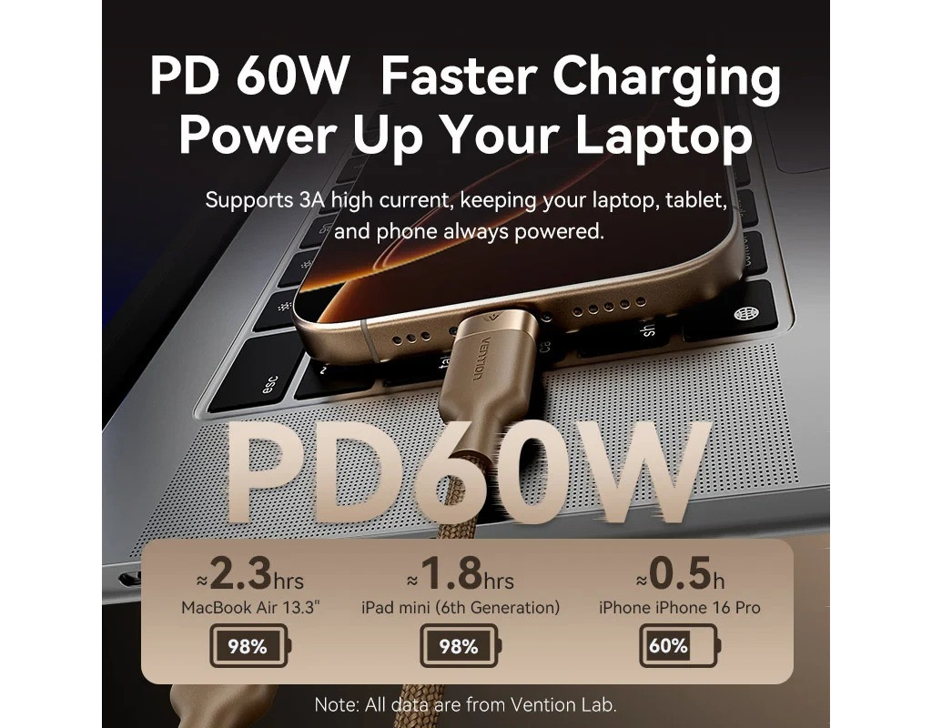 | Кабель для передачи данных Vention также поддерживает Quick Charge 4.0, расширяя его совместимость с другими устройствами, такими, как мобильные телефоны.С помощью этого кабеля вы можете полностью зарядить свои устройства за более короткое время.Поверхностная защита кабеля для передачи данных изготовлена из высококачественного материала TPE, который мы никогда не сломаем.