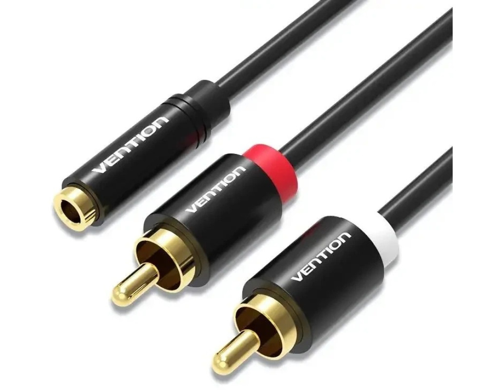| Кабель Vention 3.5mm Female to 2RCA Male Audio Cable 1M Black Metal Type (VAB-R01-B100) позволяет легко подключить усилитель или динамик с разъемами RCA к ноутбуку, компьютеру или телефону с разъемом 3,5 мм jack. Теперь можно наслаждаться чистым и четким звуком на полноценных динамиках.