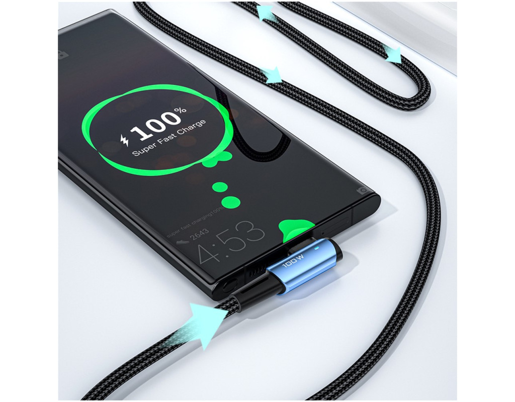 Тип - кабель, Тип коннектора 1 - USB Type-C, Тип коннектора 2 - USB Type-C, длина - 1 м, Г-образный, Со светодиодным индикатором, удобен в использовании ночью, Цвет - черный