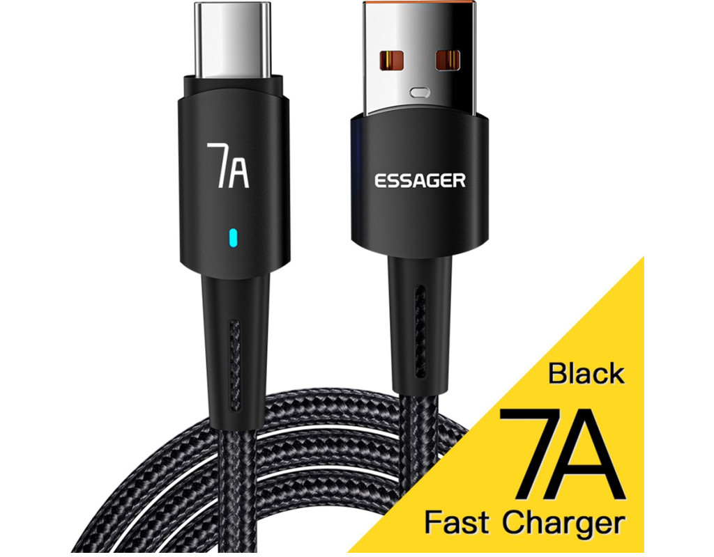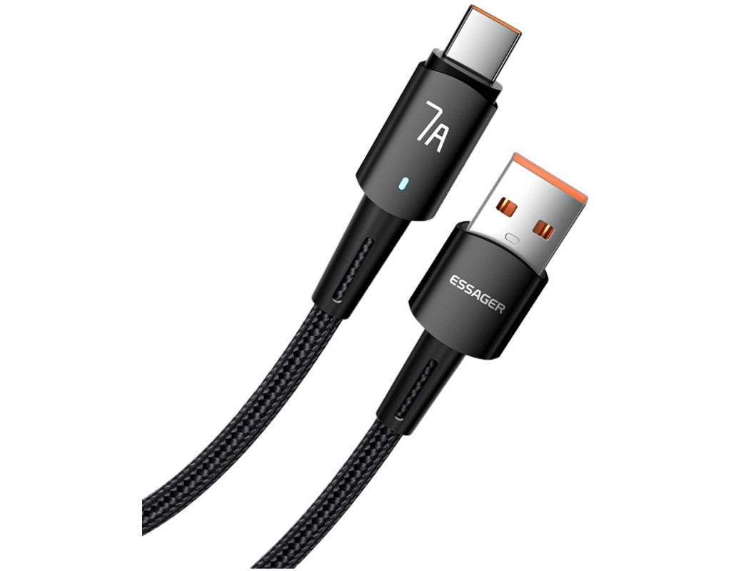 Дизайн: Плетеный кабель Essager USB-A to USB-C 100 Вт выполнен из качественных материалов. По всей его поверхности можно обнаружить нейлоновую защитную оплетку. Прочный материал не трескается и не рвется. За счет нейлоновой оплетки, кабель можно сгибать на 360°. Сам кабель выполнен из термопластичного эластомера, а коннекторы - из алюминиевого сплава с разъёмами USB-A to Type-C. Безопасный заряд батареи: Кабель Essager имеет встроенную защиту, которая устраняет перегрев и перегрузку. Наполняйте энергией ваше устройство быстро и безопасно. Высококачественный кабель Essager идеально совместим с любым устройством с разъемом USB-C. Характеристики: