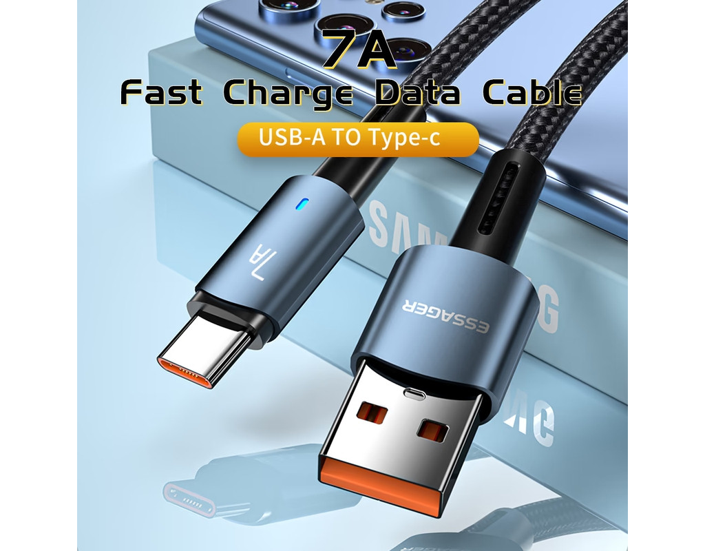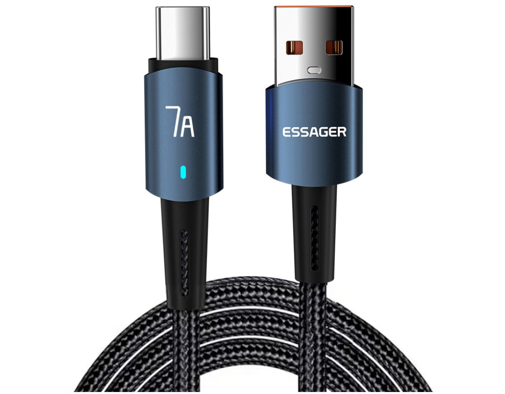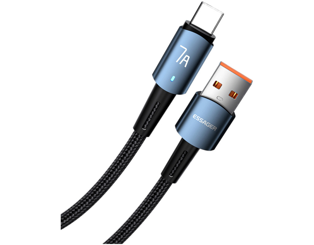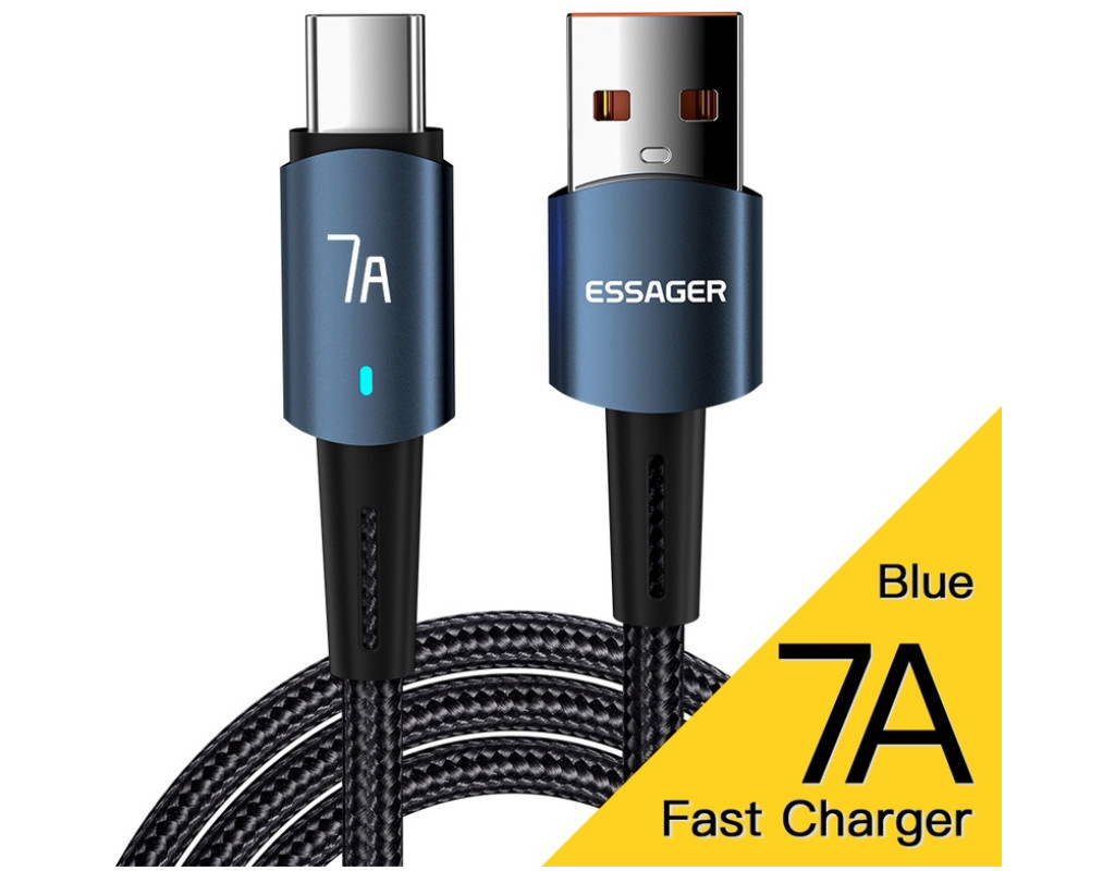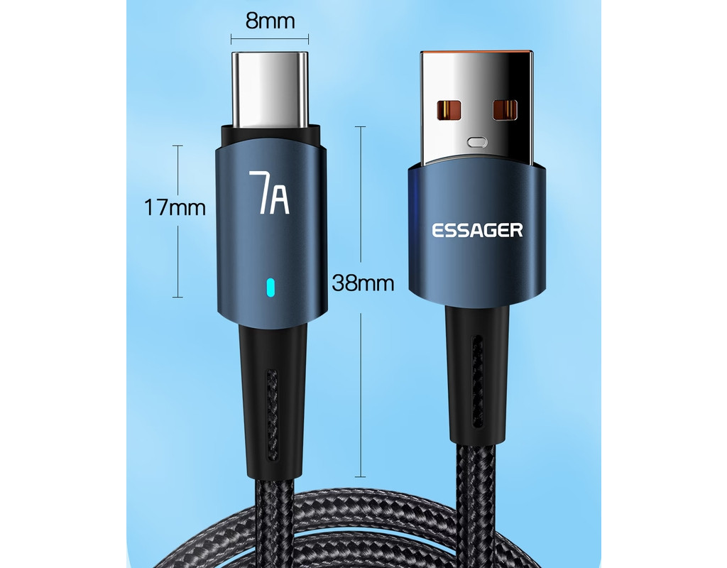 Дизайн: Плетеный кабель Essager USB-A x USB-C 100 Вт 7 A выполнен из качественных материалов. По всей его поверхности можно обнаружить нейлоновую защитную оплетку. Прочный материал не трескается и не рвется. За счет нейлоновой оплетки, кабель можно сгибать на 360°. Сам кабель выполнен из термопластичного эластомера, а коннекторы — из алюминиевого сплава с разъёмами USB-A to Type-C. Безопасный заряд батареи: Кабель Essager имеет встроенную защиту, которая устраняет перегрев и перегрузку. Наполняйте энергией ваше устройство быстро и безопасно. Высококачественный кабель Essager Data Cable 7 A идеально совместим с любым устройством с разъемом USB-C. Характеристики: