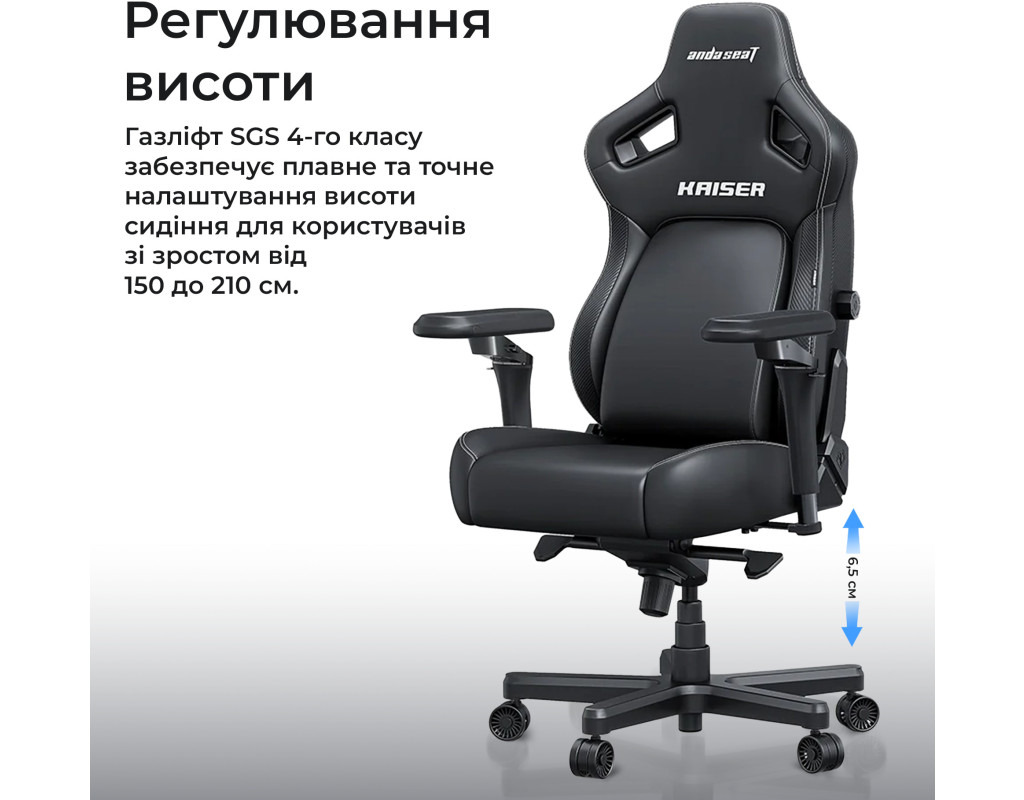 | Эргономичное геймерское кресло AndaSeat Kaiser 4 V2 XL предназначено для тех, кто ценит максимальный комфорт во время игр, работы или отдыха. Кресло оснащено инновационной поддержкой поясницы с четырьмя уровнями регулировки и встроенной диафрагмой, регулируемой по высоте и объему, что обеспечивает максимальную поддержку и комфорт во время сидения. С помощью рычага вы можете разблокировать систему поддержки поясницы, чтобы она соответствовала вашей позе на разных глубинах сиденья. Она свободно реагирует на ваши движения, когда не заблокирована, и обеспечивает крепкую поддержку, когда заблокирована. Обновленные 6D подлокотники регулируются по шести направлениям. Магнитная подушка для головы выполнена из эластичной пены с эффектом памяти и слоем охлаждающего геля, сохраняет вашу голову прохладной даже во время упорных игровых моментов. Спинка кресла отклоняется на 135°, а режим качания позволяет наклониться на дополнительные 15°. Газлифт 4-го класса обеспечивает плавную регулировку высоты на 6.5 см, что подходит для пользователей ростом от 150 до 210 см. Это настоящее сочетание современных технологий, премиального качества и продуманного дизайна, которое обеспечивает идеальный баланс комфорта и надежности на долгие годы. |