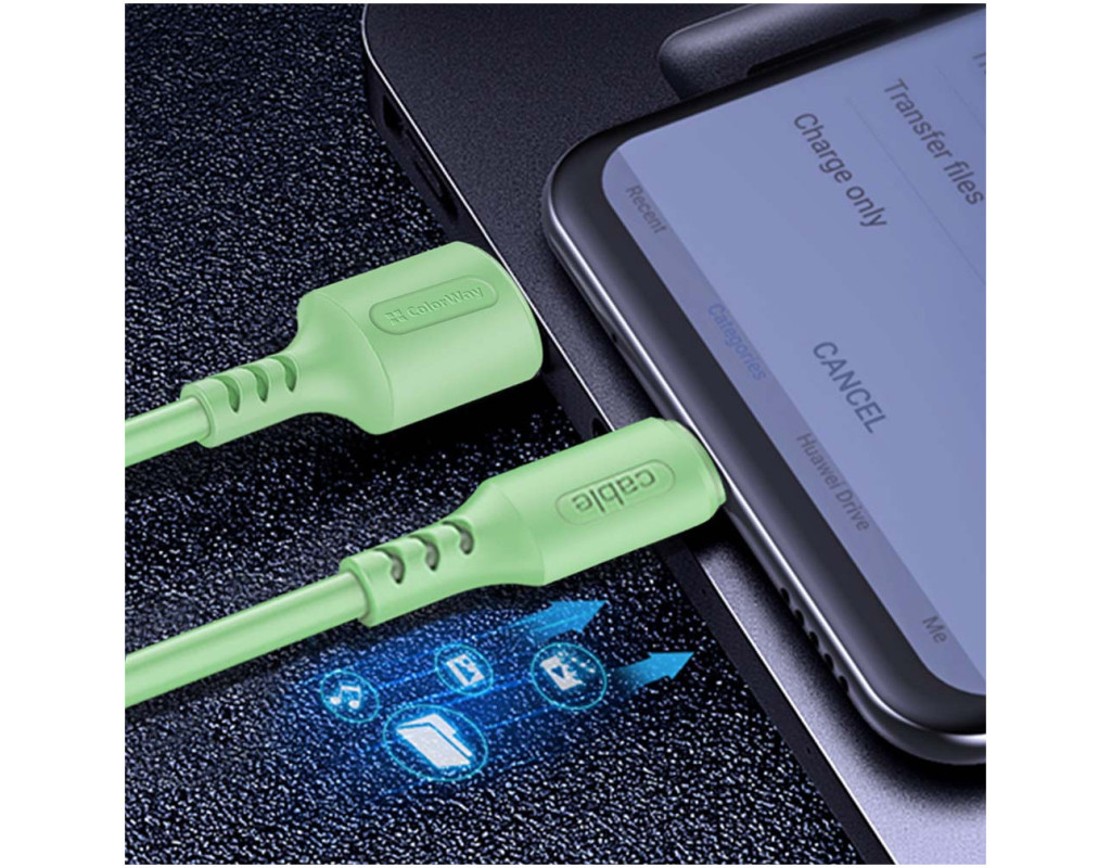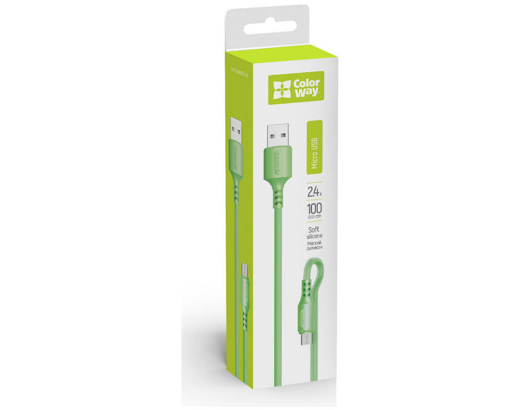Дата кабель USB 2.0 AM to Micro 5P 1.0m soft silicone green ColorWay (CW-CBUM042-GR)