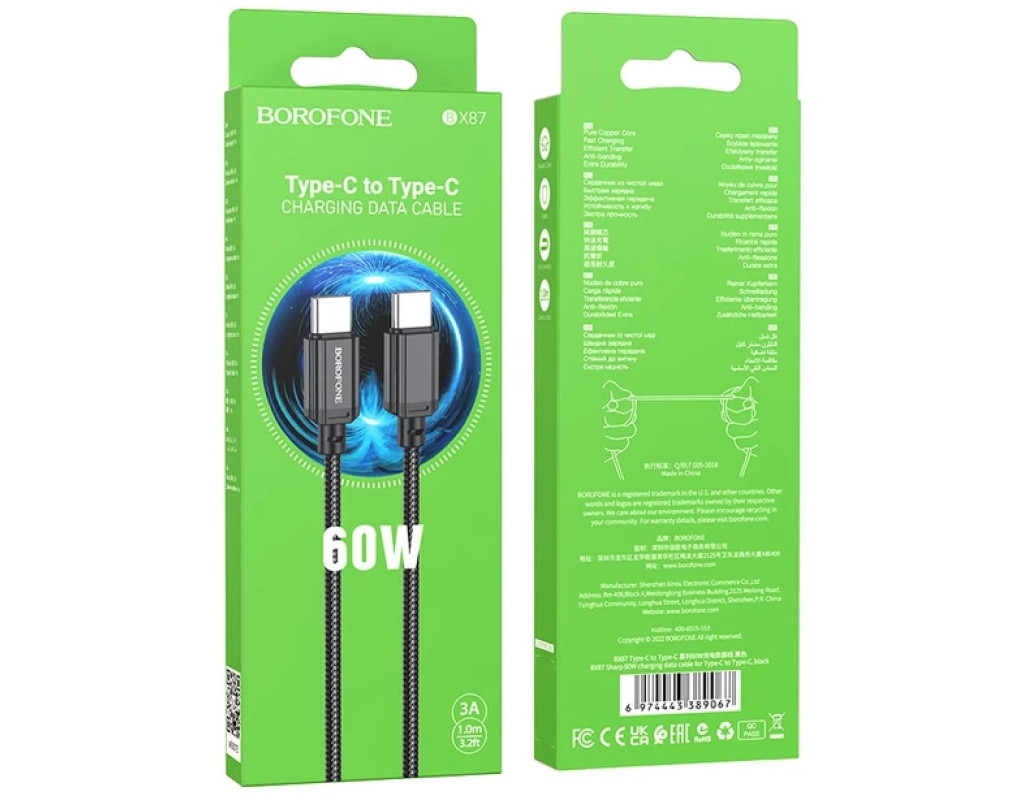 Кабель BOROFONE BX87 Sharp 60W charging data cable для Type-C to Type-C Black имеет два Type-C разъема и возможность передачи до 60 Вт мощности, что делает его идеальным выбором для скоростной зарядки, выдающей соответствующую (и меньшую) мощность. Используя этот кабель, можно заряжать не только смартфон, планшет или повербанк, но и ноутбук. Кабель имеет гибкую эластичную оплетку и укрепленное соединение со штекерами (коннекторами), это делает его надежным аксессуаром, который с легкостью выдержит до 10 тысяч скручений. Коннекторы выполнены из качественного и прочного алюминия – выносливы к возможным неурядицам и не повредят разъем устройства. Помимо быстрой зарядки, интерфейс USB Type-C обеспечит высокую скорость передачи данных, поэтому не придется долго ждать, пока тяжелые файлы будут записываться с одного гаджета на другой. Длина кабеля 1 метр, чего вполне достаточно для зарядки смартфона, подключения к ноутбуку, МЗП или автомобильному зарядному устройству – когда лишняя длина не нужна, а только будет мешать. Таким образом, BOROFONE BX87 – качественный кабель питания и синхронизации, который подойдет для подзарядки с поддержкой PD, QC 4.0. QC 3.0 гаджетов с разъемом Type-C. |