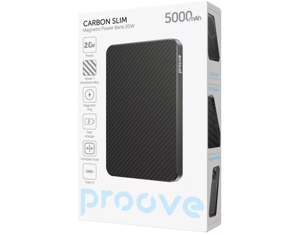 | Proove Carbon Slim 20W 5000 мАч – компактный павербанк для ежедневного использования.
