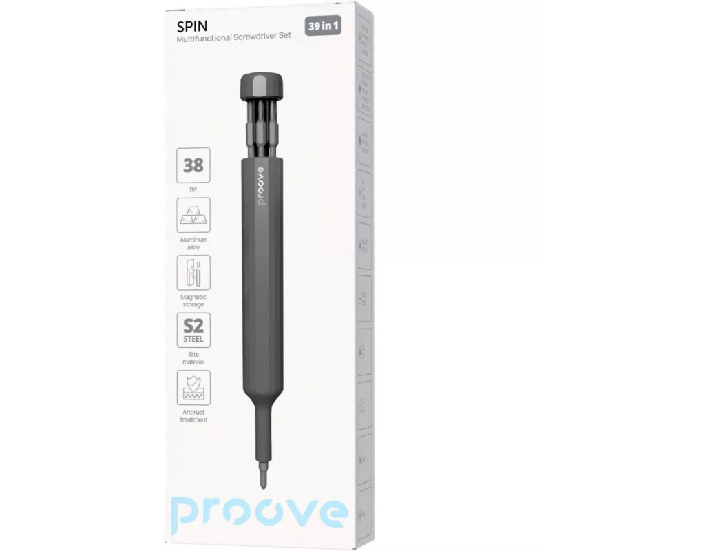 | Proove Spin 39 in 1 – универсальный набор отверток, предназначенный для выполнения широкого спектра задач и подходящий как для профессионального, так и для повседневного использования. Благодаря наличию 39 насадок, набор охватывает большинство популярных типов креплений, поэтому пользователю не нужно отдельно искать инструмент под каждую задачу: все необходимое уже находится в одном компактном кейсе.
