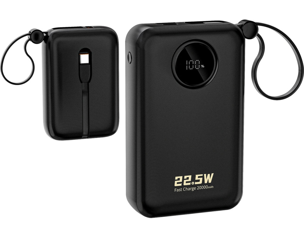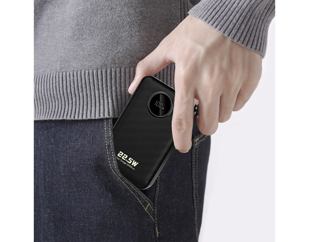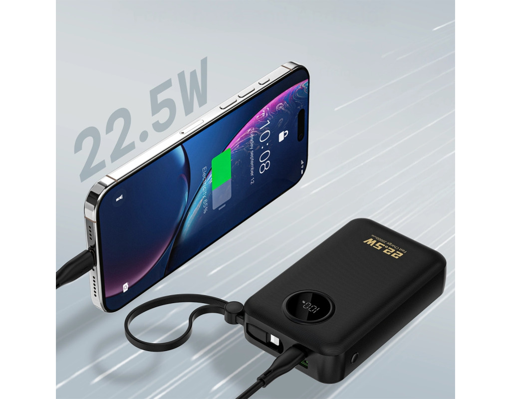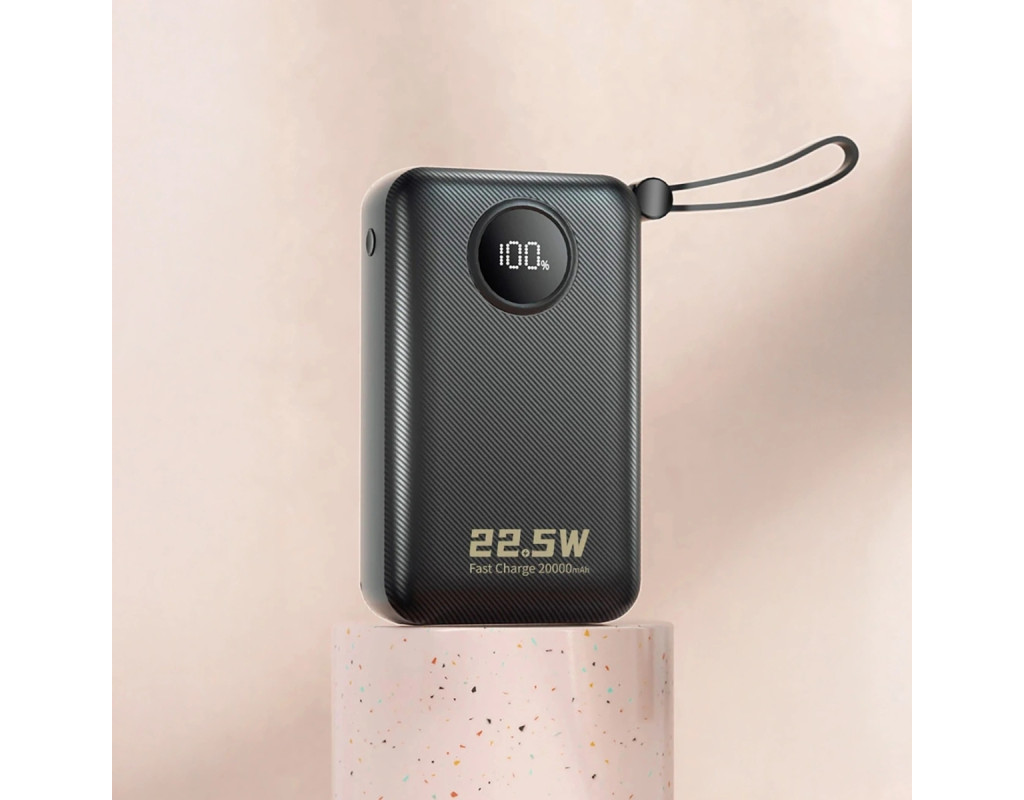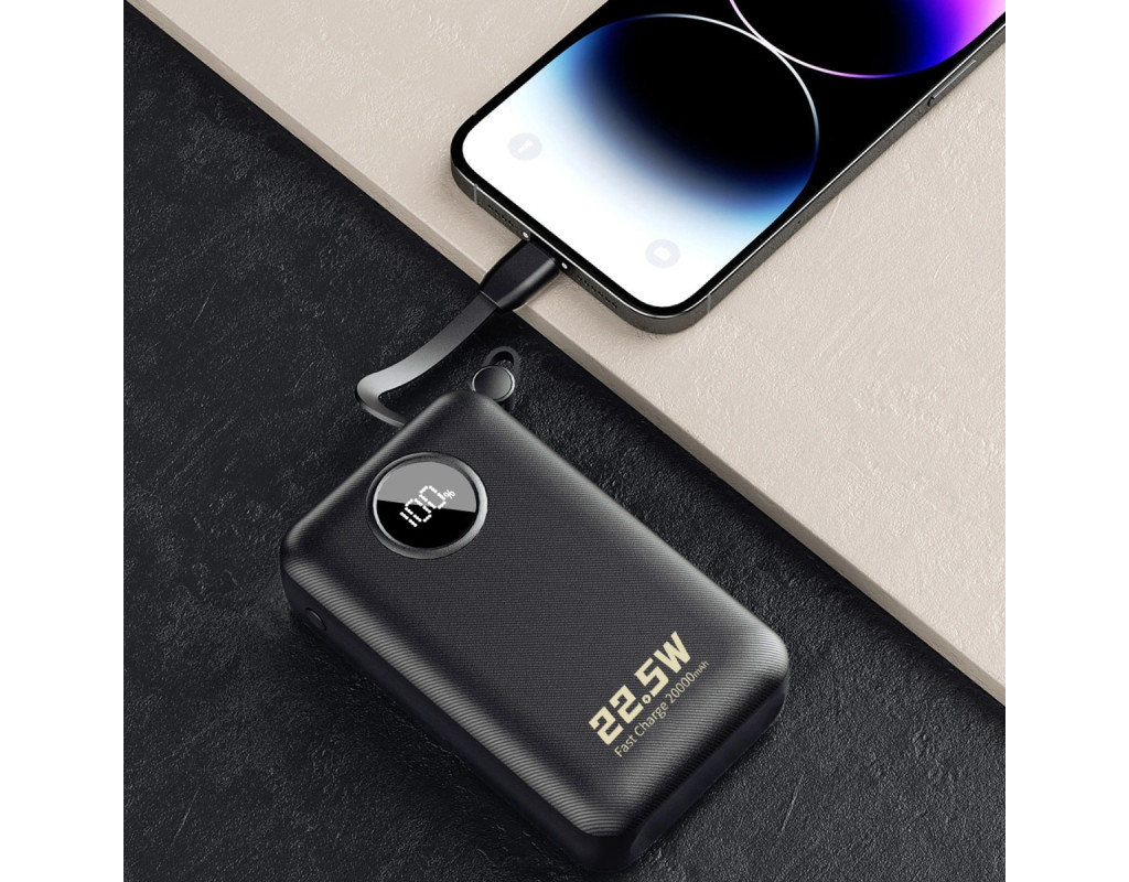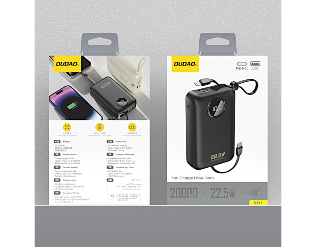 | УМБ Dudao 20000mAh K14+ 22,5W PD,QC USB-A,USB-C In/Out,with built-in USB-C/Lightning cables Black |