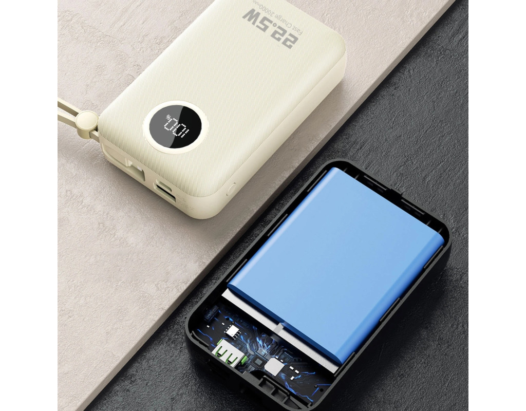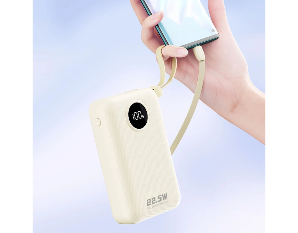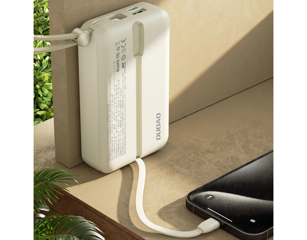 | УМБ Dudao 20000mAh K14+ 22,5W PD,QC USB-A,USB-C In/Out,with built-in USB-C/Lightning cables White |