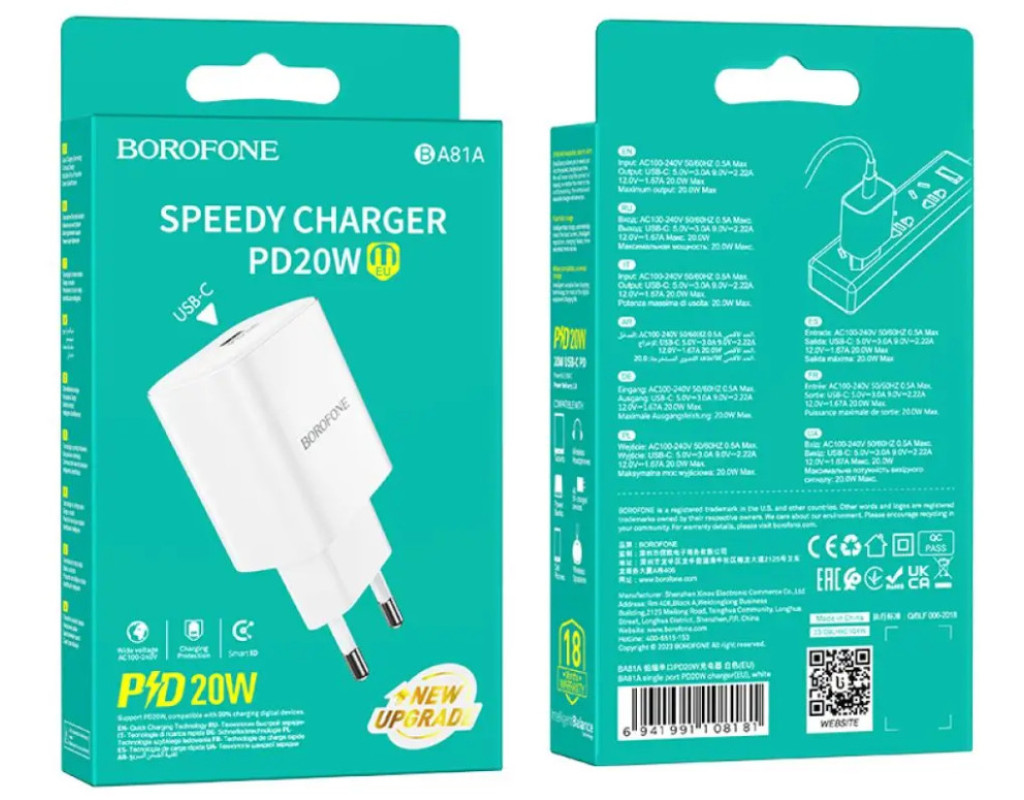 Зарядное устройство BOROFONE 1xUSB-C PD20W BA81A white (6941991108181)