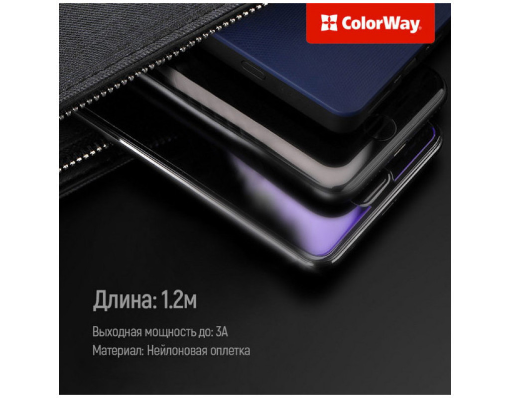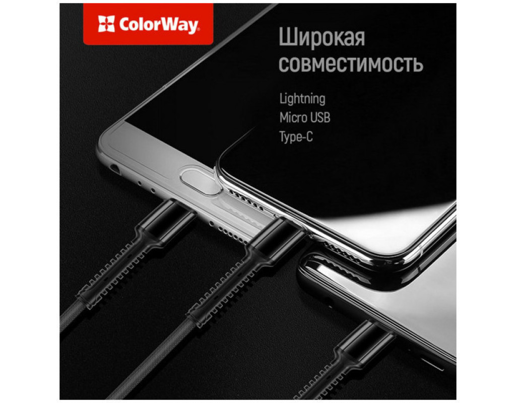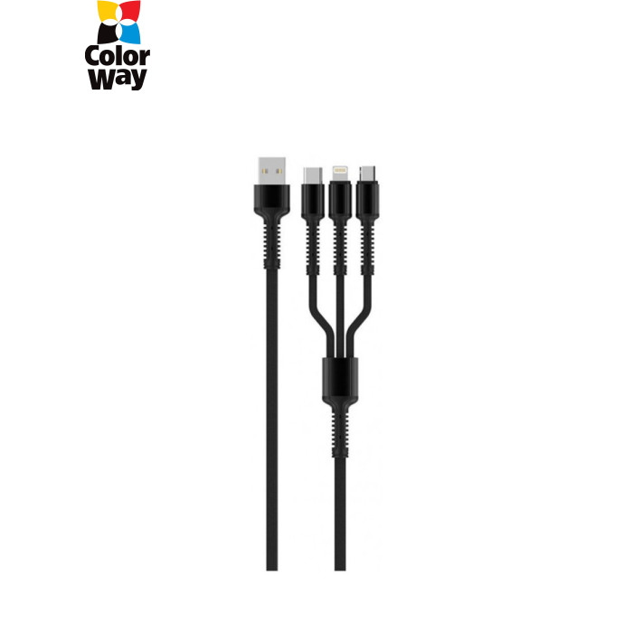 Дата кабель USB 2.0 AM to Lightning + Micro 5P + USB-C 4.0A (20W) ColorWay (CW-CBU3003-GR)