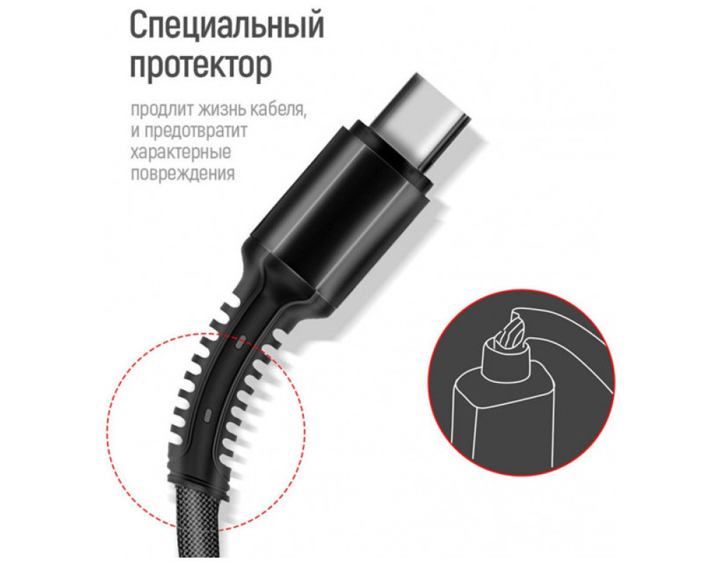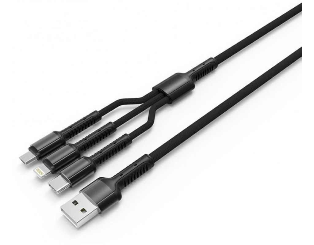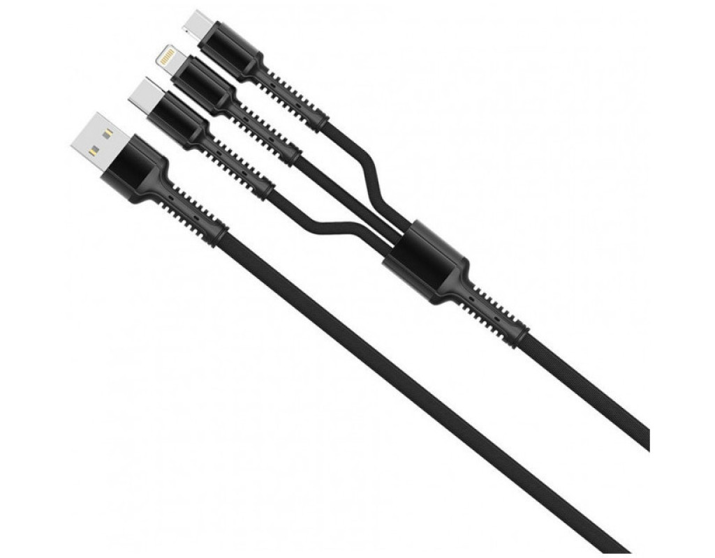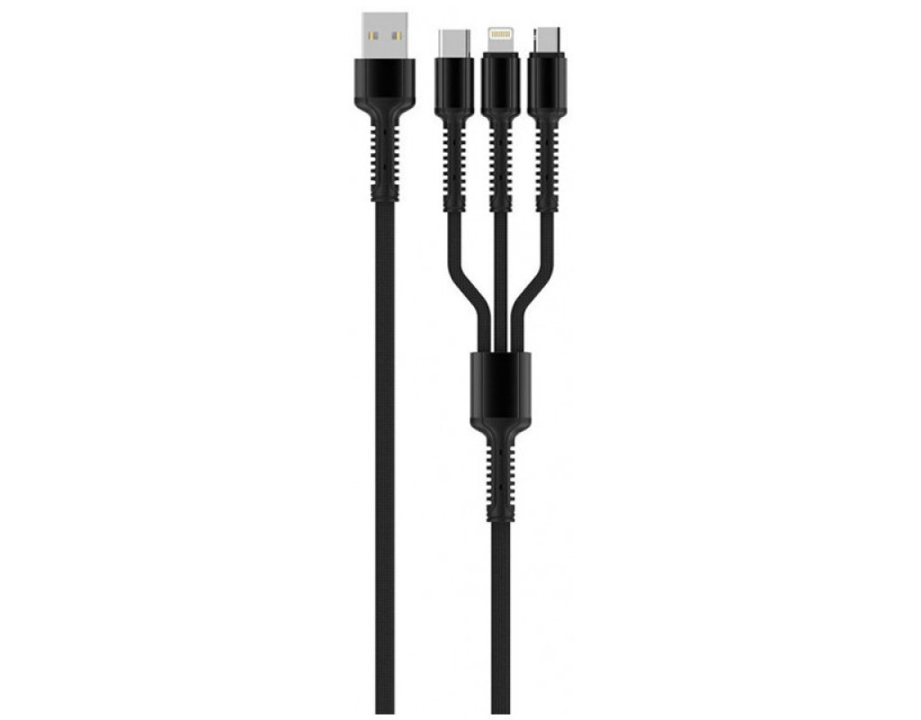 Тип - кабель, Тип коннектора 1 - USB 2.0, Тип коннектора 2 - micro USB, Lightning, USB Type-C, длина - 1 м, 3 коннектора в одном, Цвет - черный