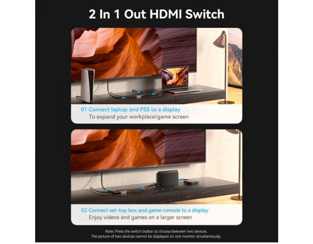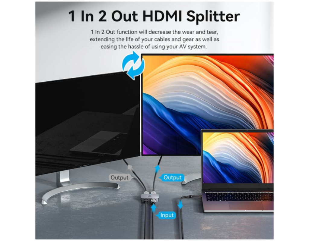 Сплиттер VENTION HDMI 2.1 UHD 8K 60Hz 3D, HDCP HDR Dolby 7.1 перемикач двонаправле (AKPH0)