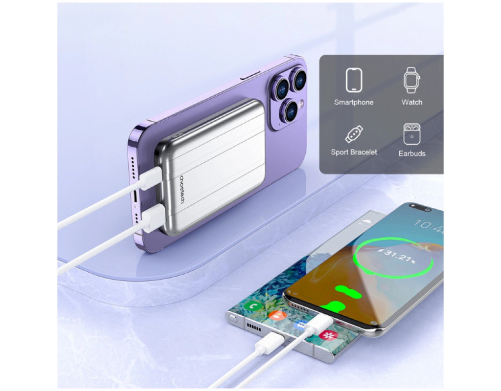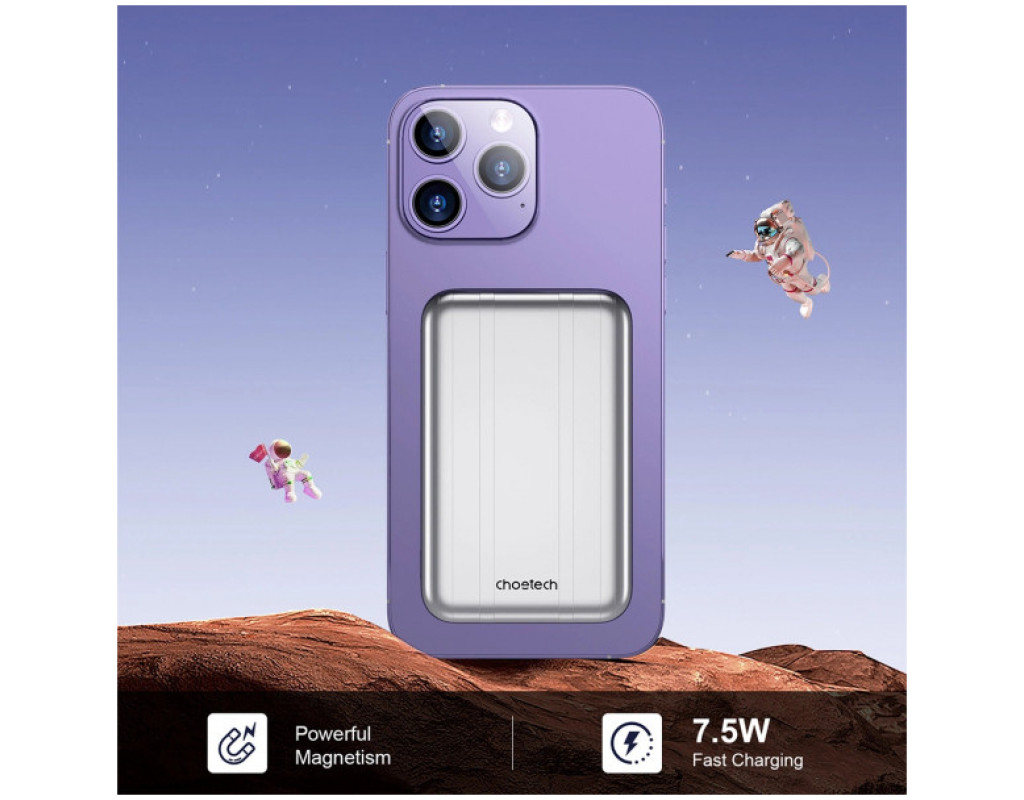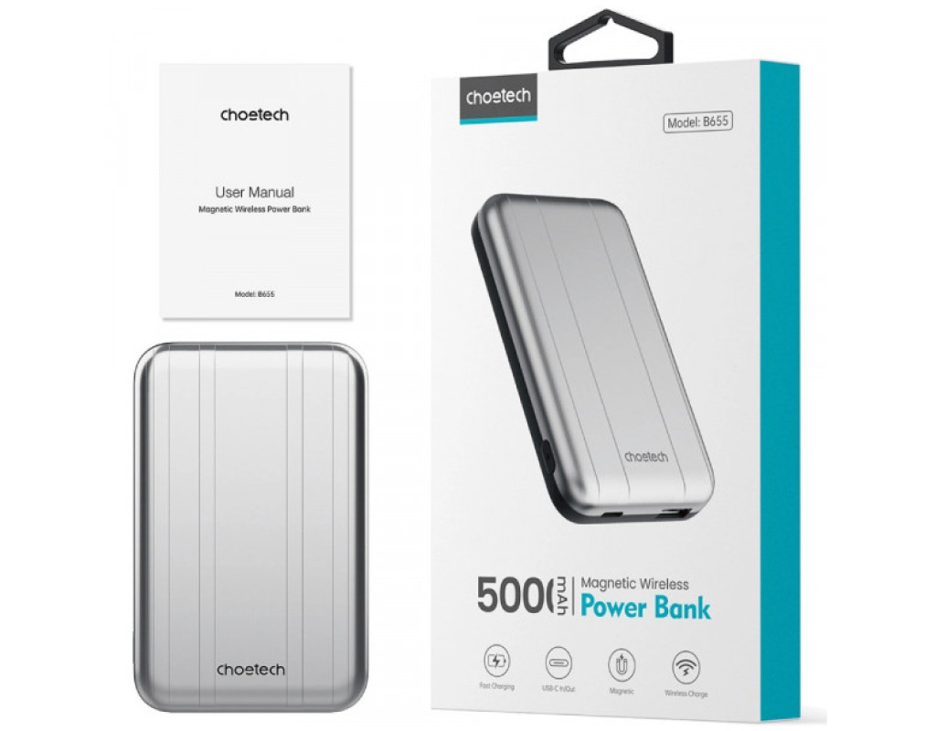 Батарея универсальная Choetech Magnetic Wireless 5000mAh 10W, USB-A,USB-C In/Out (B655 / 6932112104779)