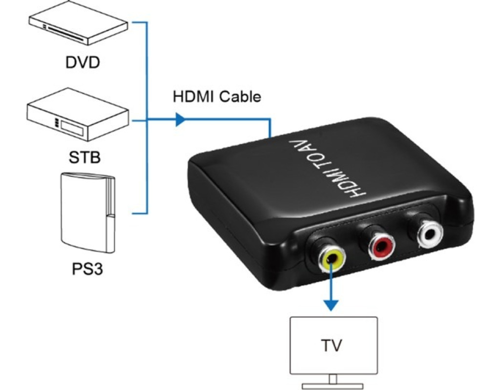 | Этот пластиковый конвертер HDMI в AV преобразует цифровой сигнал HDMI в композитный видеосигнал AV (CVBS) и стереофонический аудиосигнал FL/FR. Он преобразует высококачественный видеосигнал HDMI в обычные сигналы CVBS (стандартная четкость 480i, 576i), которые могут приниматься телевизором, видеомагнитофонами VHS, DVD-рекордером. Также он поддерживает NTSC и PAL двух стандартных форматов. Не поддерживает коды DTS и RAW. |