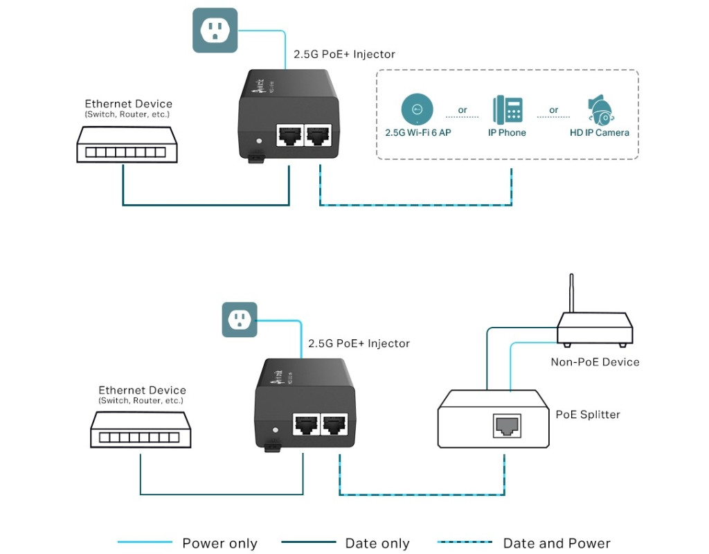 Соответствует стандартам IEEE802.3af/at, питание до 30 Вт. Снижает затраты на инфраструктуру благодаря одновременной передаче данных и питанию через кабель Ethernet Автоматически определяет и подает точную мощность для удовлетворения потребностей устройства Настенный и настольный дизайн подходит для большинства сценариев установки Plug & Play, не требует настройки Встроенный блок питания |