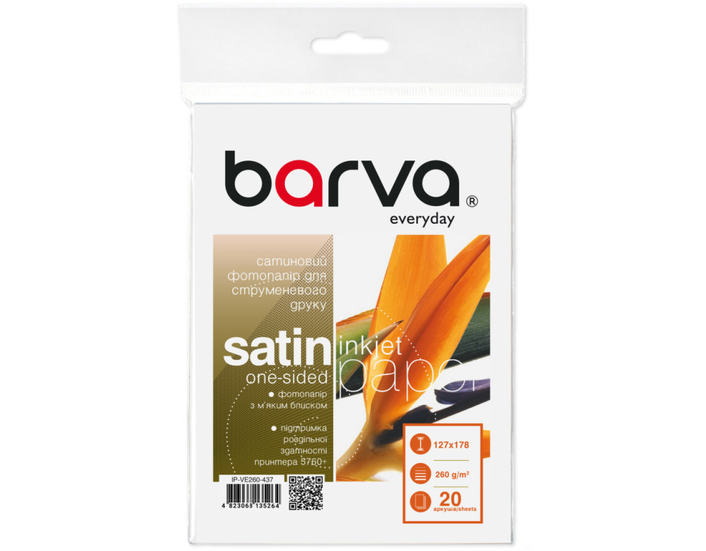 Фотобумага Barva 13x18, 260 g/m2, Everyday, satin, 20с (IP-VE260-437)