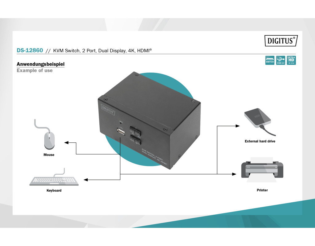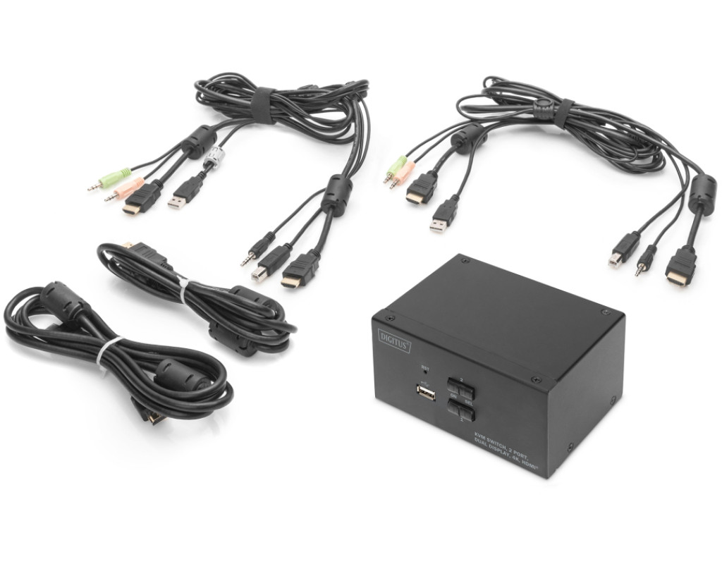 | Благодаря 2-портовому KVM-переключателю DIGITUS для двух дисплеев можно управлять двумя 4K-совместимыми ПК с помощью одной комбинации USB-клавиатуры и мыши. Нажав кнопку или горячую клавишу, можно удобно переключаться между двумя ПК и избавиться от необходимости повторного подключения всех кабелей. Вывод на два монитора осуществляется через два выхода HDMI на задней панели. Также можно переключаться между звуковыми сигналами для микрофона и динамика. Кроме того, на передней панели имеется USB-порт для использования с другими периферийными устройствами, такими как USB-накопители или внешние жесткие диски, на обоих ПК. Подключенные периферийные устройства назначаются активному ПК. Светодиоды состояния на передней панели коммутатора постоянно показывают текущую конфигурацию. Тонкий переключатель обладает дополнительными преимуществами прочного металлического корпуса. |