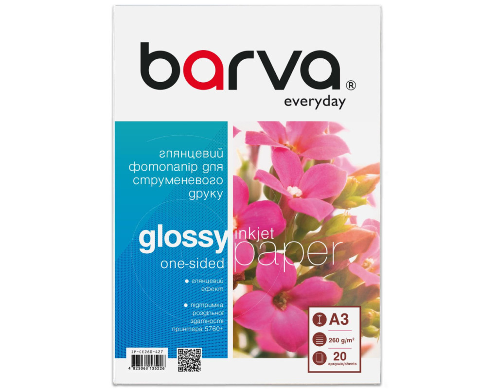 Бумага Barva A3, 260 г/м2, Everyday, gloss, 20 с (IP-CE260-427)