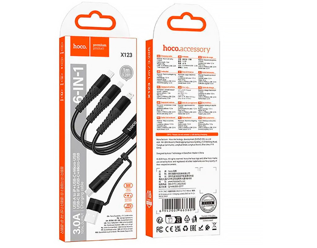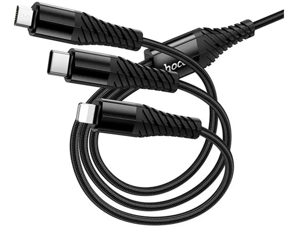 Кабель HOCO X123 USB-1 3 in 1 Micro / Iphone / Type-C, 2A, довжина 1м, Black, Box