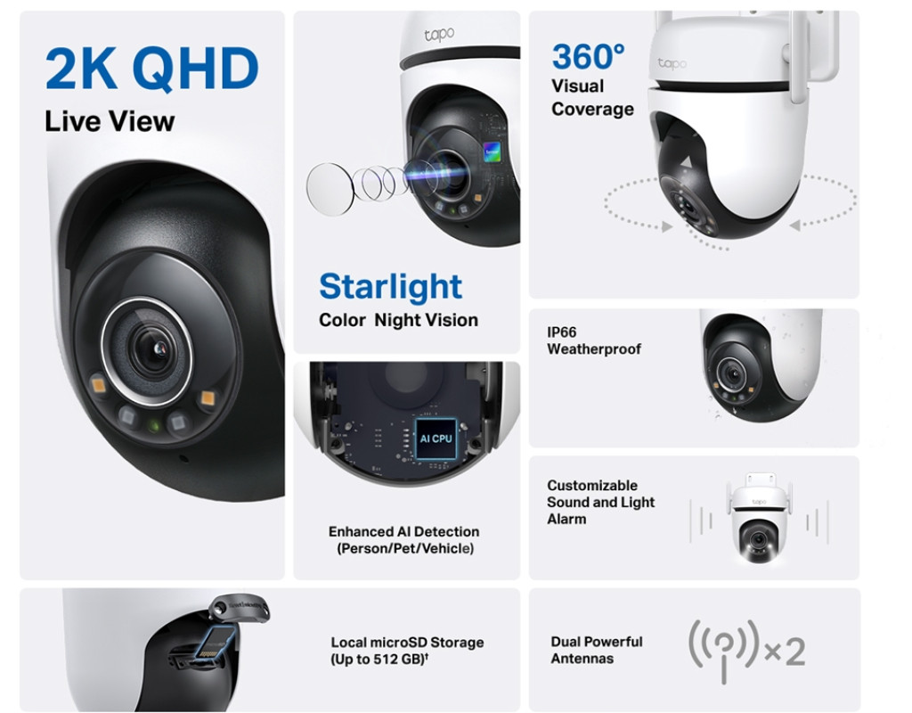 Кристально чистое изображение 2K QHD Теперь в 1,7 раза больше пикселей, чем в 1080p, что обеспечивает более четкое видео и более яркие фотографии. Интеллектуальное обнаружение ИИ идентифицирует людей, домашних животных и транспортные средства, извещая пользователей о необходимости. Настройте обнаруженный объект Отрегулируйте чувствительность обнаружения движения и настройте зоны/пределы активности для вашего удобства. Также можно включить режим патрулирования, чтобы камера курсировала между двумя настроенными точками. Надежная сеть, гибкое подключение Две мощные внешние антенны обеспечивают более широкое покрытие беспроводной связи (до 150 метров на открытых местах) и более стабильное соединение. Вы также можете подключить камеру к сети через порт RJ45 Ethernet. Настройка звуковой и световой сигнализации Записывайте собственные аудио в качестве сигнализации, чтобы расширить время использования. Также поддерживается сверхяркий и регулируемый свет, чтобы отпугнуть нежелательных посетителей. |