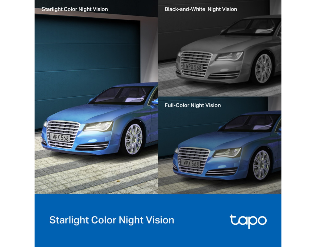 | Tapo C520WS воспроизводит более яркие изображения, чем другие цветные камеры ночного видения с включенными прожекторами, благодаря датчику Starlight.