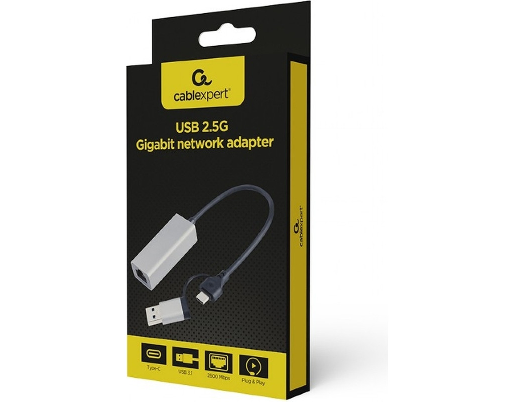 Адаптер USB-A /C to Lan 2.5 Gbit/s Cablexpert (A-USB3AC-LAN2G-01)